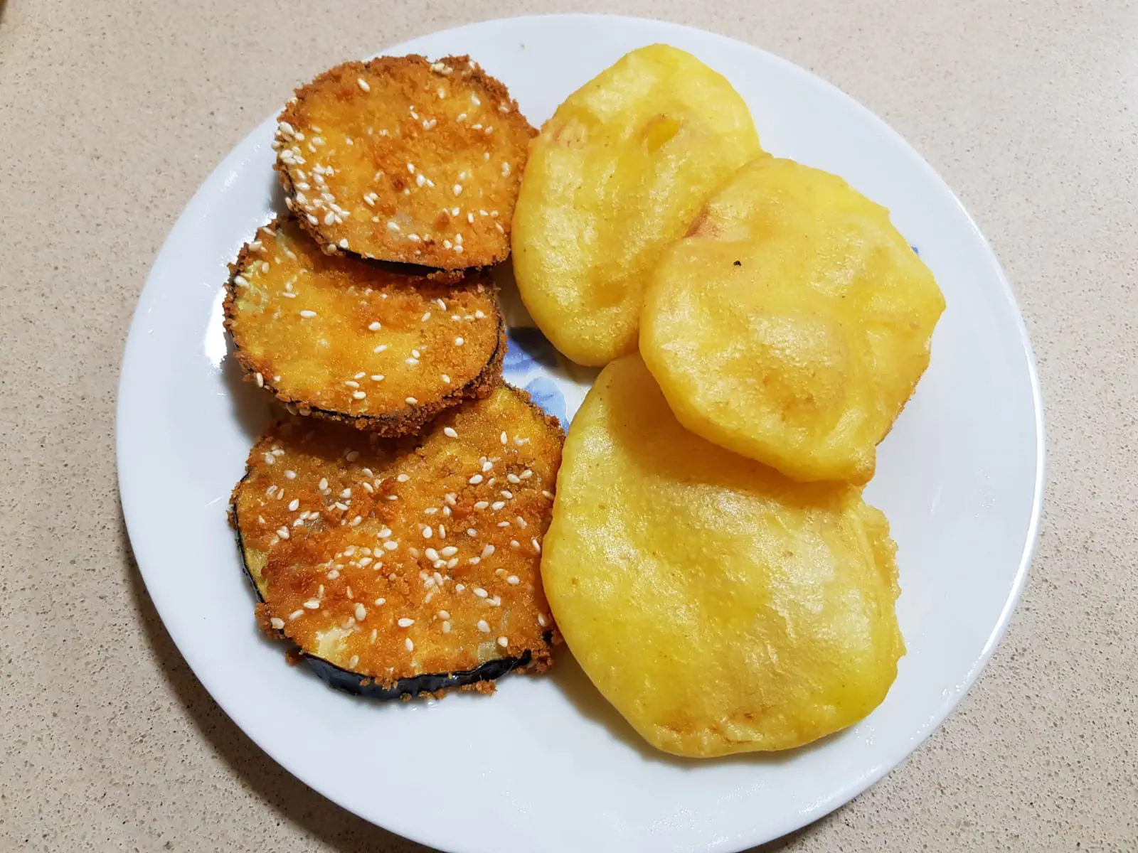 וצ'יפס מיוחד כזה שאני מכינה.. זה תפוח אדמה פרוס דק שאני מכינה לו תערובת ואז זה מתנפח בטיגון וממש טעים😋