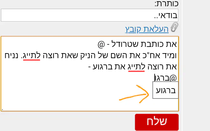 ומיד אח"כ את השם של הניק שאת רוצה לתייג. נניח את רוצה לתייג את ברגוע -