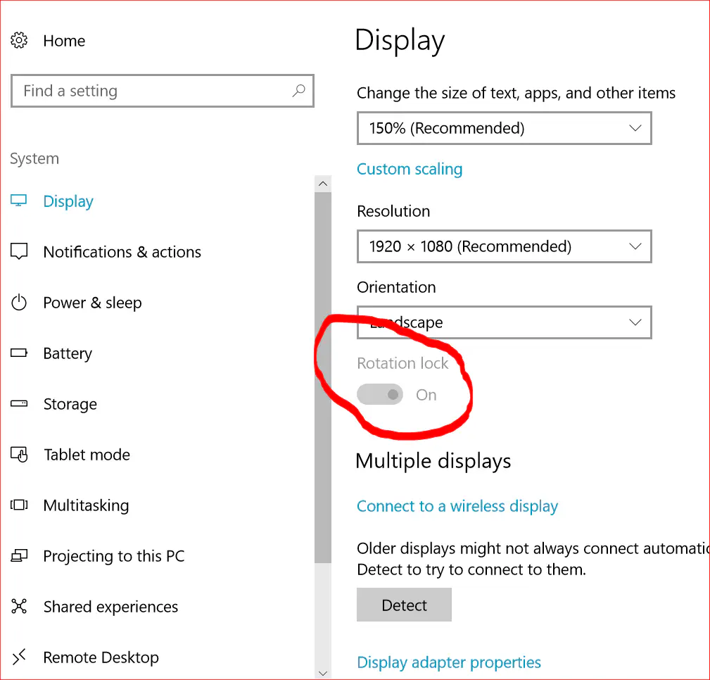 החלק המוקף באדום זה הסיבוב מסך במחשב שלא נותן לי אפשרות לבטל את הנעילת מסך, למה?