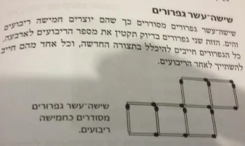 אבל בפתרון שמופיע בספר כל ארבעת הריבועים זהים בגודלם, ולטעמי זה פתרון מובחר יותר.