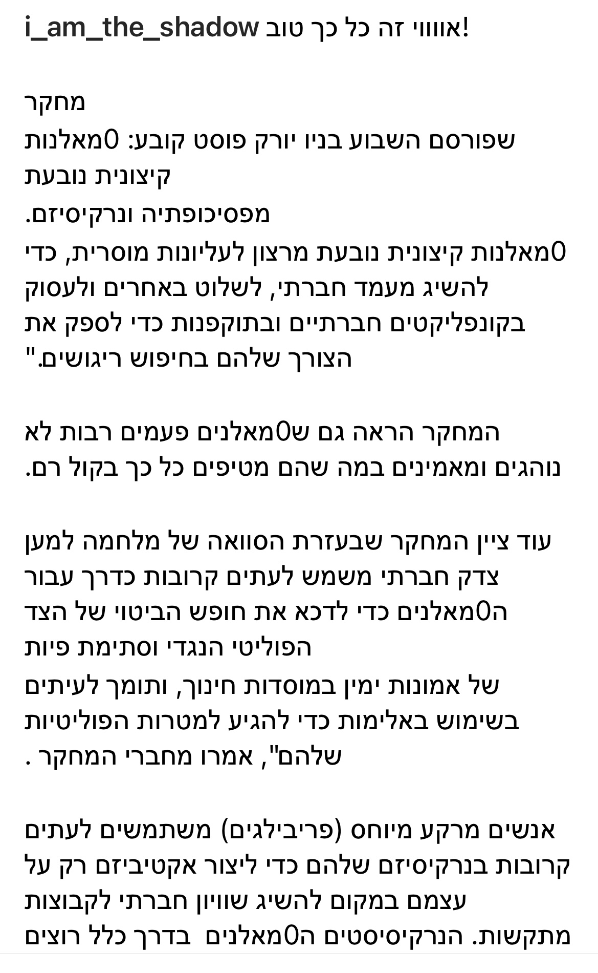 ואני לא מתכוון לנבור בפיד שלו כדי להביא לך דוגמה, מעדיף שקט נפשי, מוזמן לחפש בעצמך.