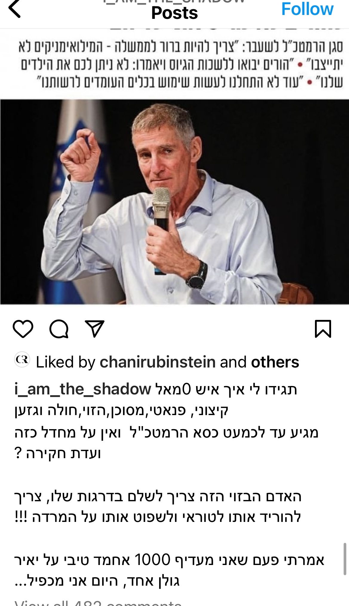 כשהיו את המהומות בלוד ורמלה עם הערבים הוא הוציא סרטון שצריך לטפל במי שעושה את הבלאגן