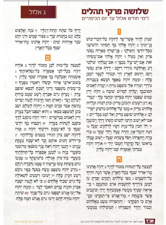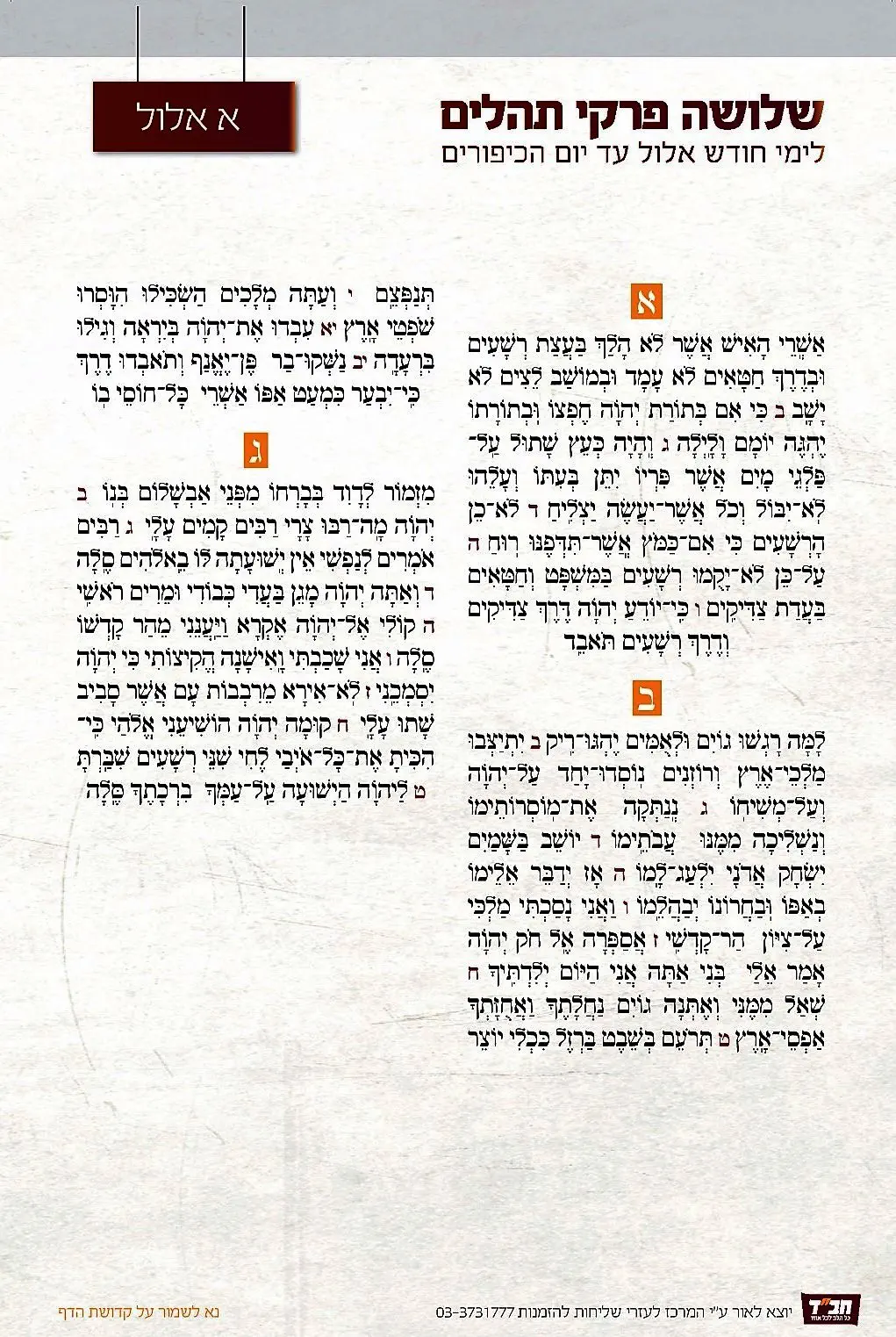 שלושה פרקי תהילים, א אלולמשיח נאו בפומ!