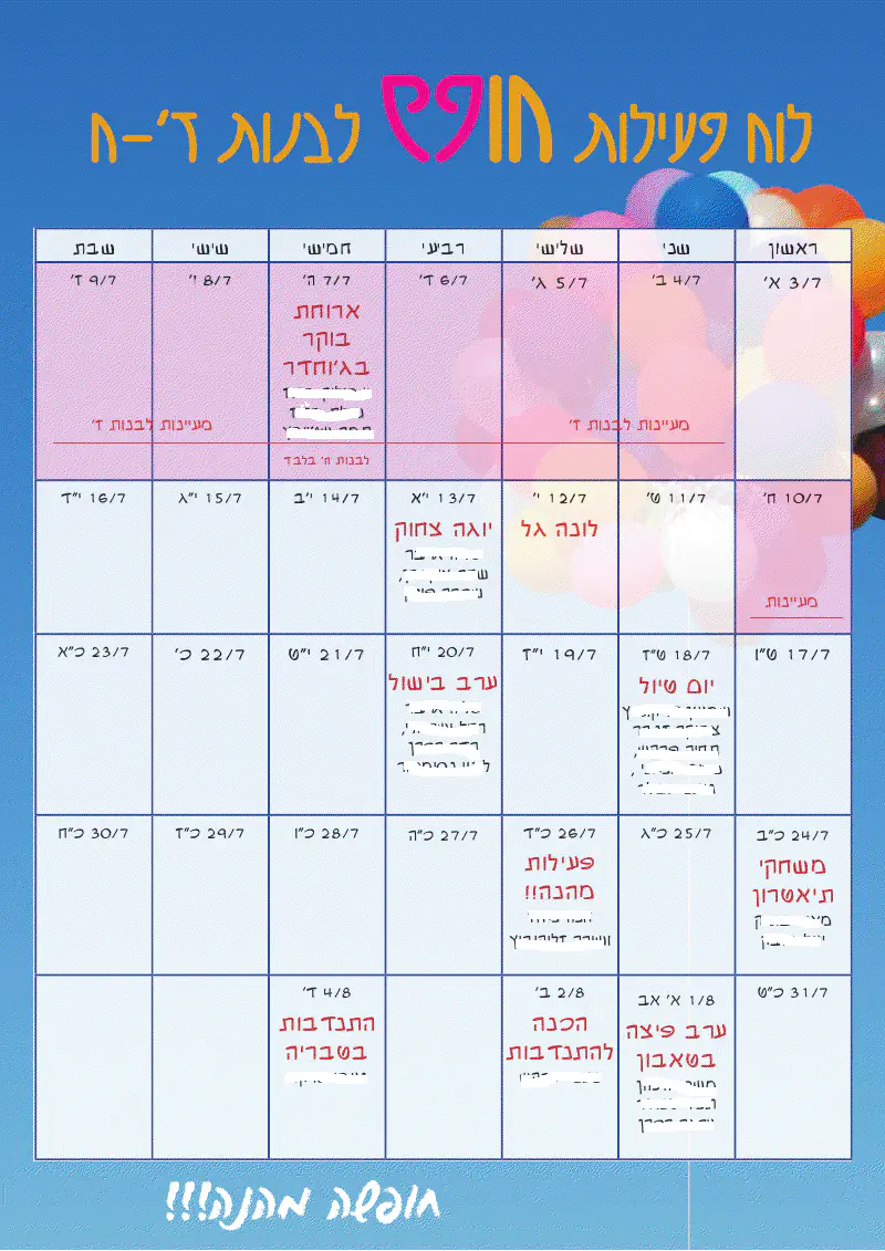 ] שיוצא לפני אירועים תנועעעתיים- שבת ארגון, מועצה וכו'