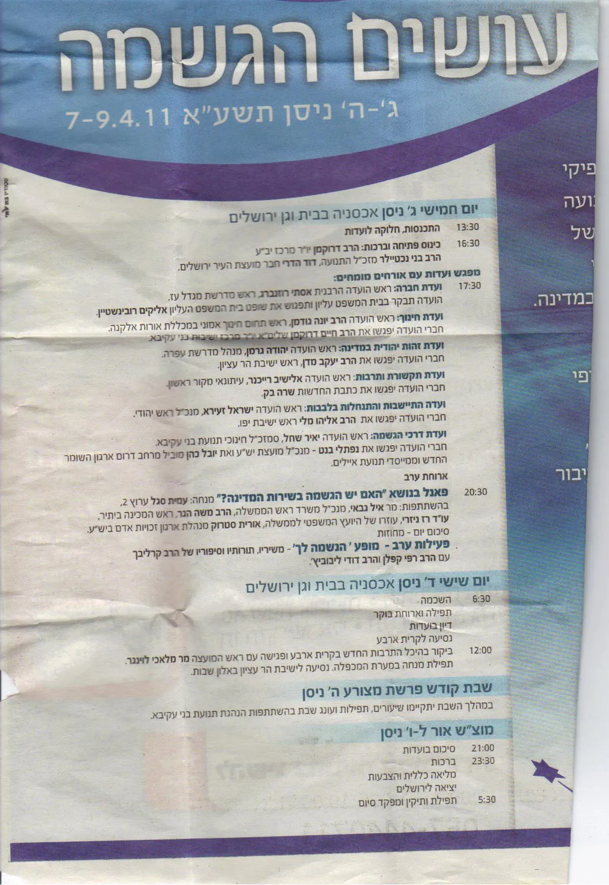 השבת כל עיתון זרעים היה על מועצת ההגשמה. כל ועדה כתבה מה מטרתה.