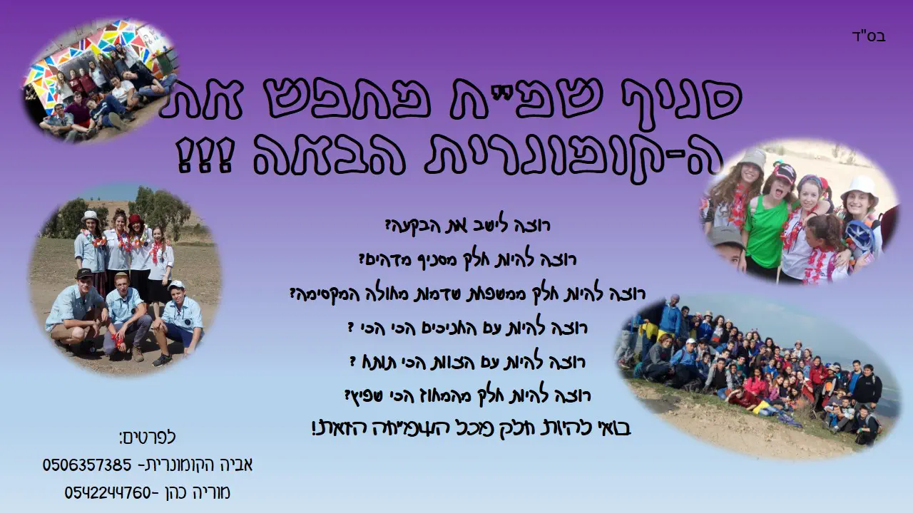 הצוות מסתכל עלייך!מה שאת תשדרי יעבור לצוות ולחניכים והוא יוביל את האנרגיות בסניף!!