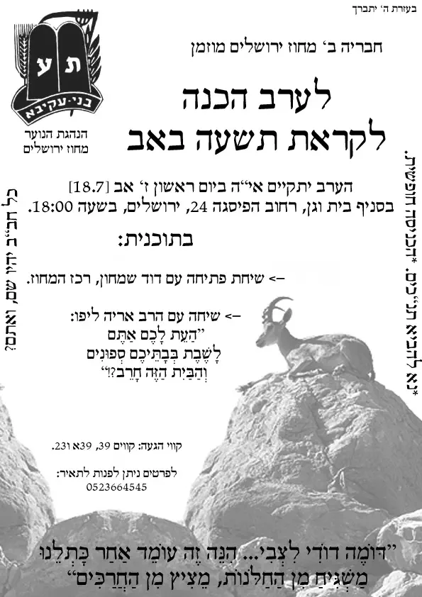 ערב הכנה לקראת תשעה באב!בניעקיבא