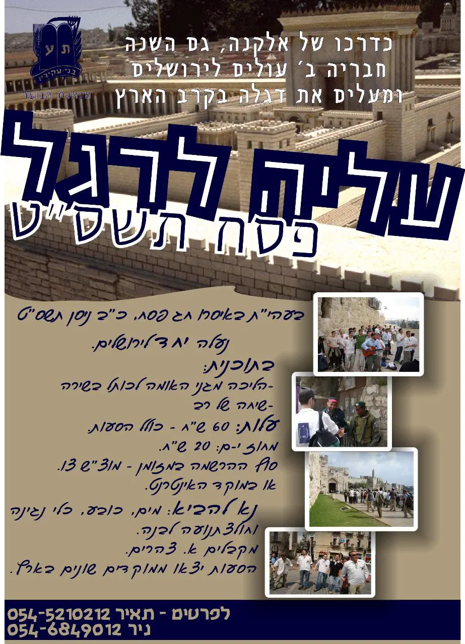 הוועידה מברכת על מפעל העלייה לרגל לירושלים בחג הפסח בו נוטלים חלק חברי חבריא ב´ בשנים האחרונות.