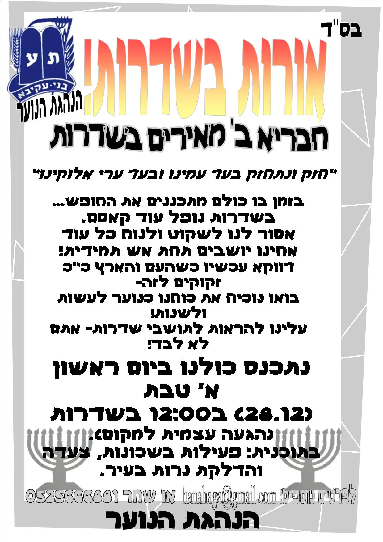 בעקבות המצב העגום בשדרות, הועלה רעיון בקרב החניכים בסניפנו