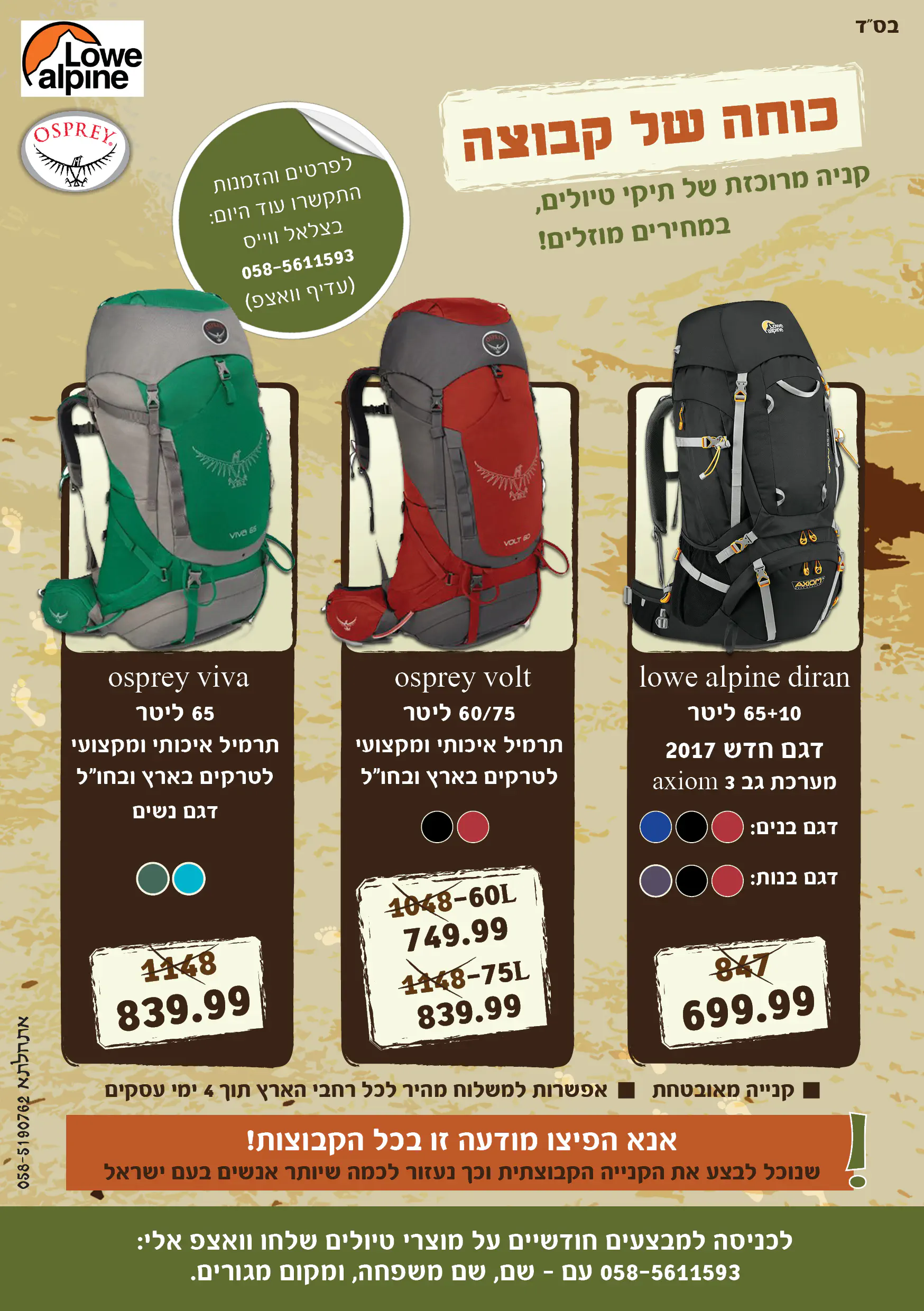 רכישה מרוכזת של תיקי טיולים בזול.ואחד עם כיפה