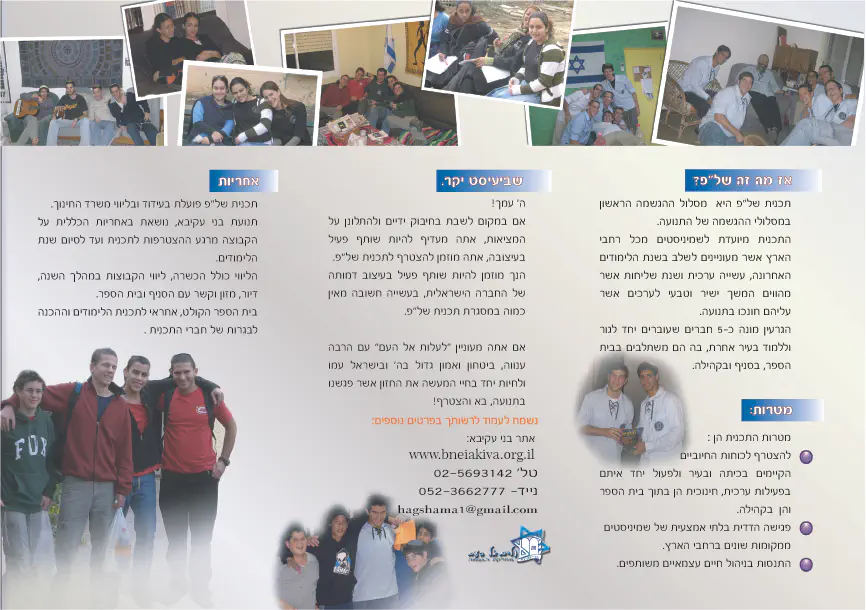 ב"ה בשבת פרשת פקודי מתוכנן שבת שתעסוק בנושא ארץ ישראל, השבת תערך באחת מנקודות ההתיישבות שהוקמו השנה, בשבת יהיה פעילויות בנושא ארץ ישראל ועוד...,השבת מיעדת לבנים בלבד.