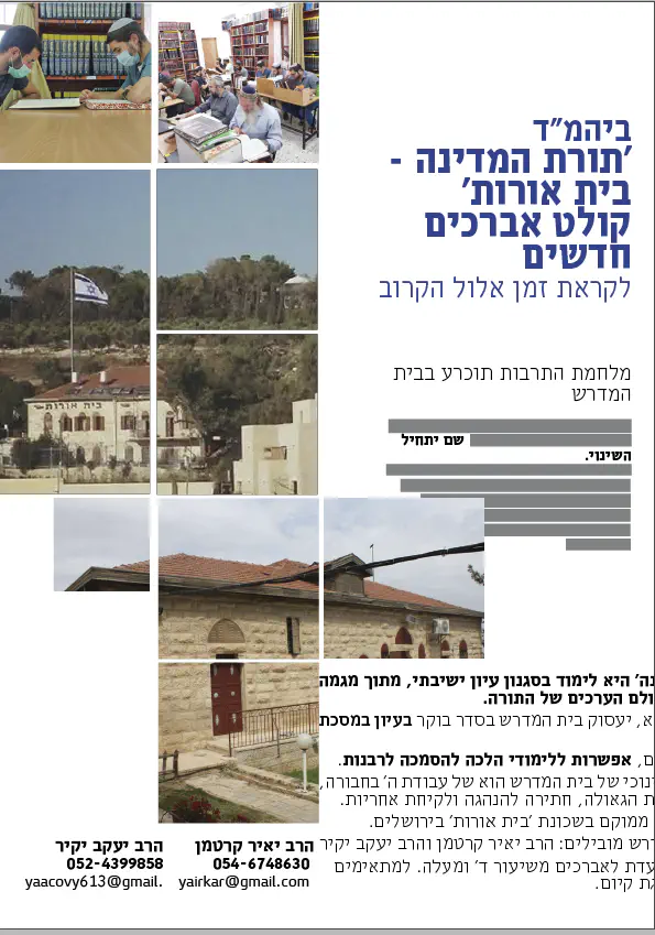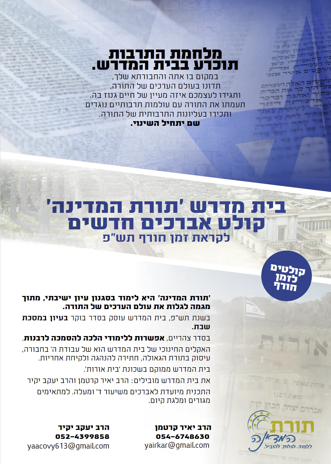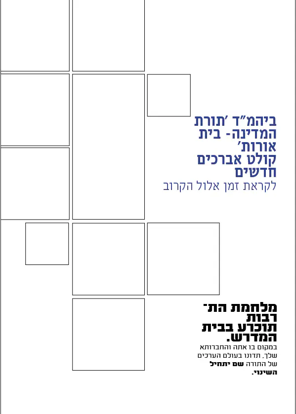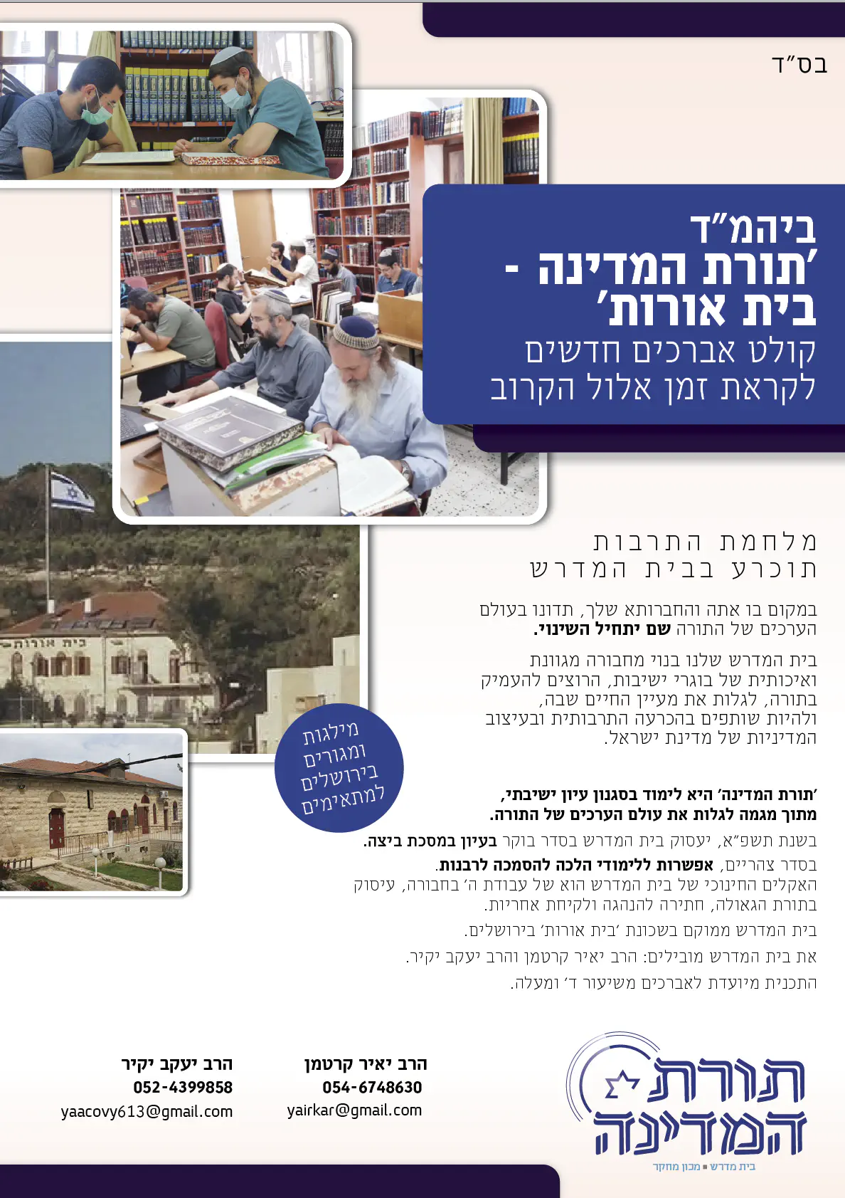 הדבר השני - זה שרצינו מודעה יותר מתונה: יותר ירושלים ובית מדרש, פחות מלחמת התרבות. אחרי שאנשים יבואו לבית מדרש, האופי הזה של בית המדרש המיוחד הזה -בית אורות - יהיה חלק מהם.