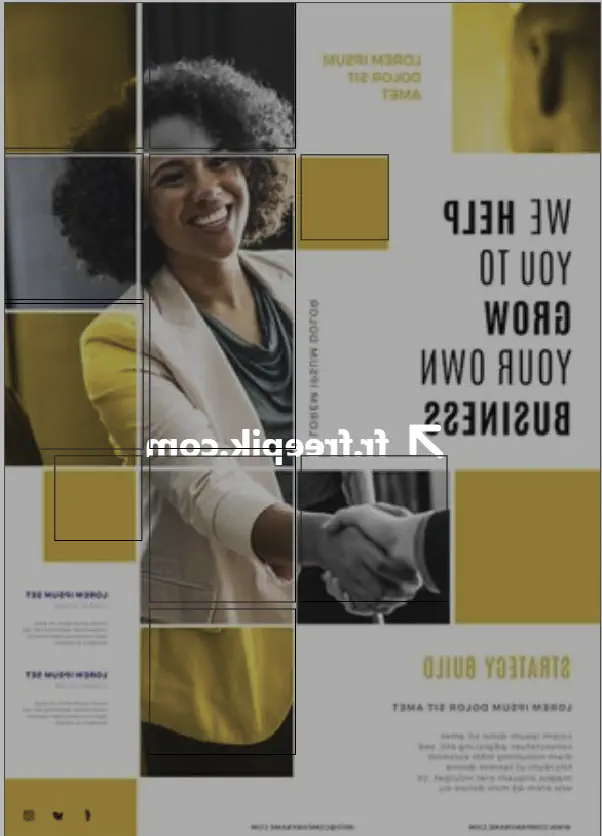 הפכתי את המודעה (כי בעברית אנחנו כותבים מימין לשמאל), ובניתי את הריבועים של התמונות: