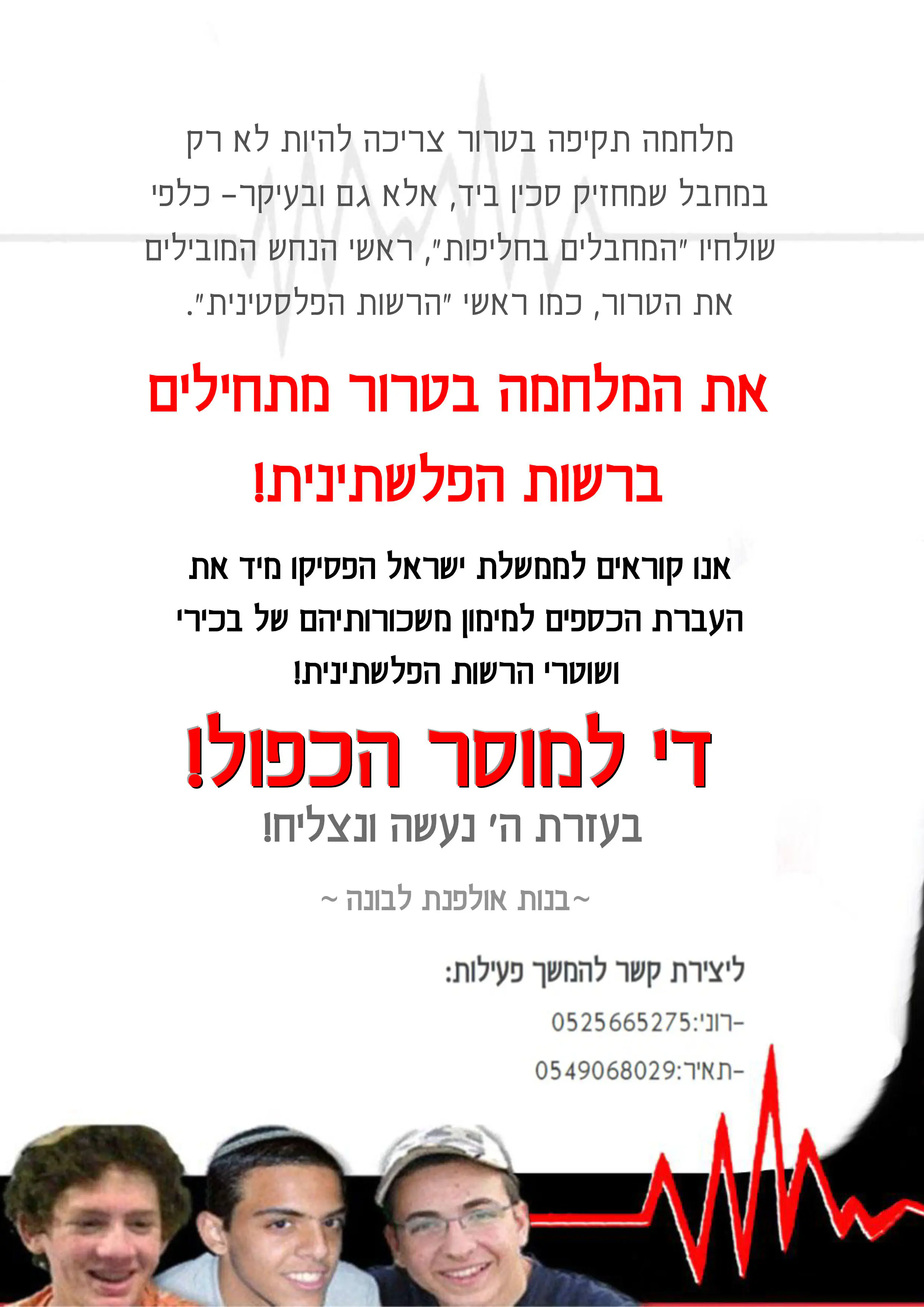 גם אנחנו חווים וכואבים את החטיפה של שלושת הבחורים,