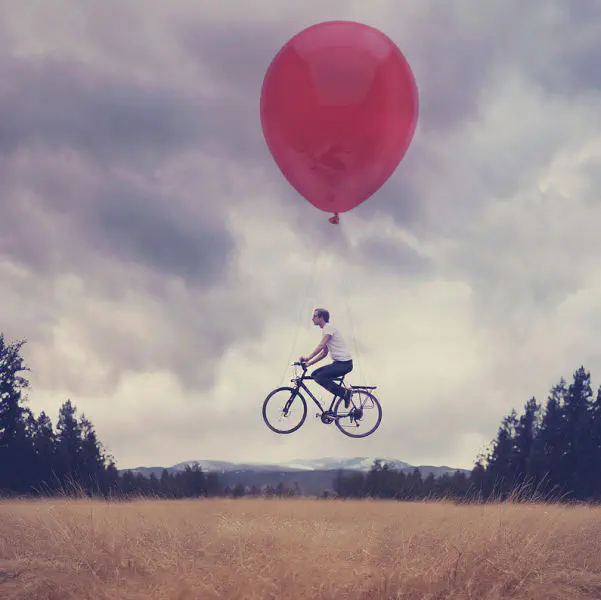 בלון, איש, אופניים, נוף = תראו מה יצא!! תראו את הרוח בשיבולים!! את ההשתקפות בבלון!