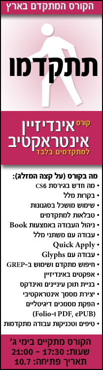 ווקטוריות ספציפיות, ואינדיזיין לעבודה מבוססת טקסט, והבאתו לדפוס.
