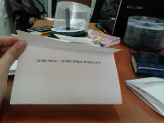הביאו לנו פעם מקופלת עם כאילו עץ מלמעלה [כאילו שהמקופלת זה הגזע, ומלמעלה בריסטול ירוק גזור בצורה של עץ..] ועל צד אחד כתוב 'מה הטעם בנטיעות?' ועל הצד השני 'טעים מאוד!'
