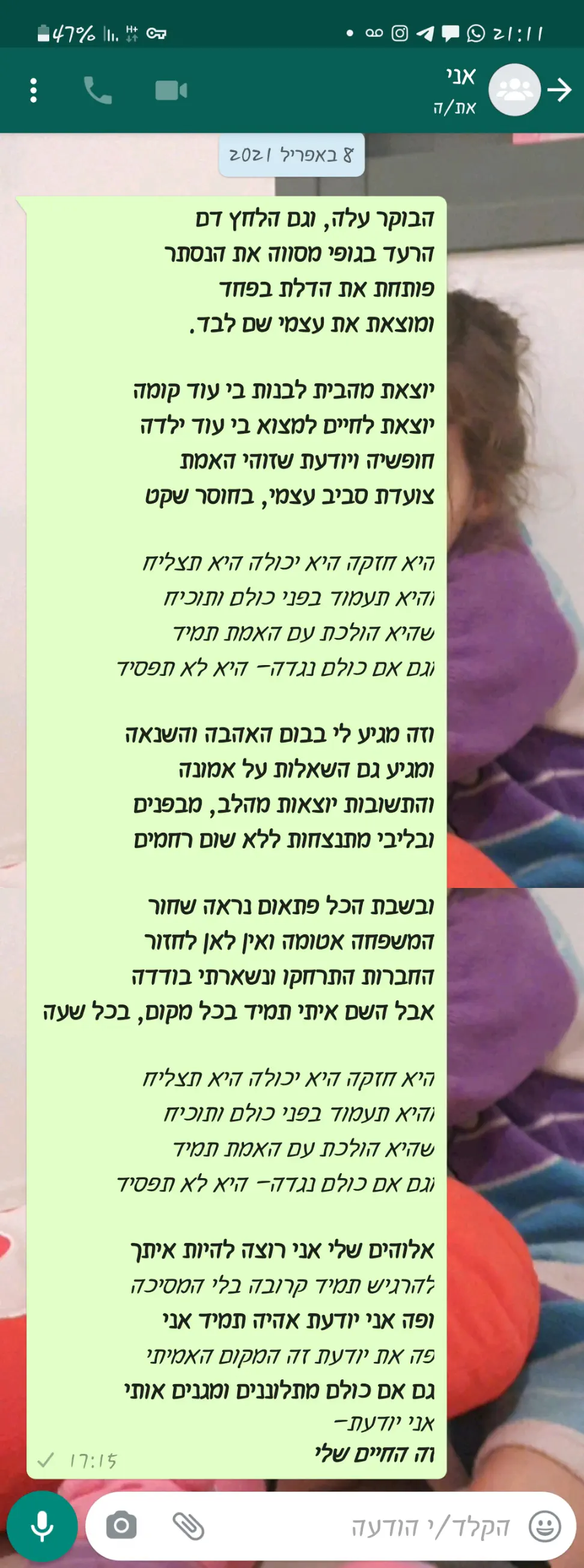 הוא עוצם את העיניים, נותן לדמעות לזרום. שיוציאו קצת מהכאב החוצה, שיוציאו קצת מהמילים שכליי המציאות מצמצים.