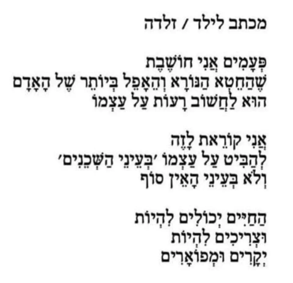 ״יהי רצון שתזכה לאהבה״. משה הוגה לאט את המילה האחרונה, אבידת כל האבידות. ״שהיא תתגלה בך ולך ולא תחסר אותה יותר לעולם.״