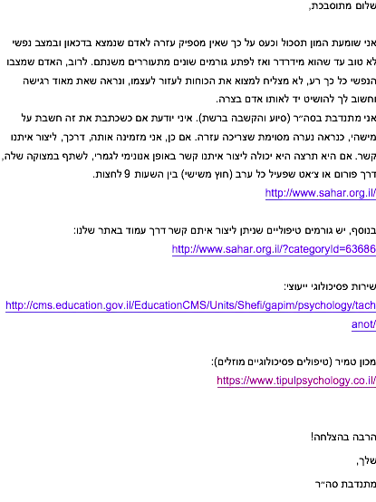 (ולי ב"ה היה מישהו שדאג וניסה ועזר. אז תודה ענקית לך אם אתה רואה את זה!!!)