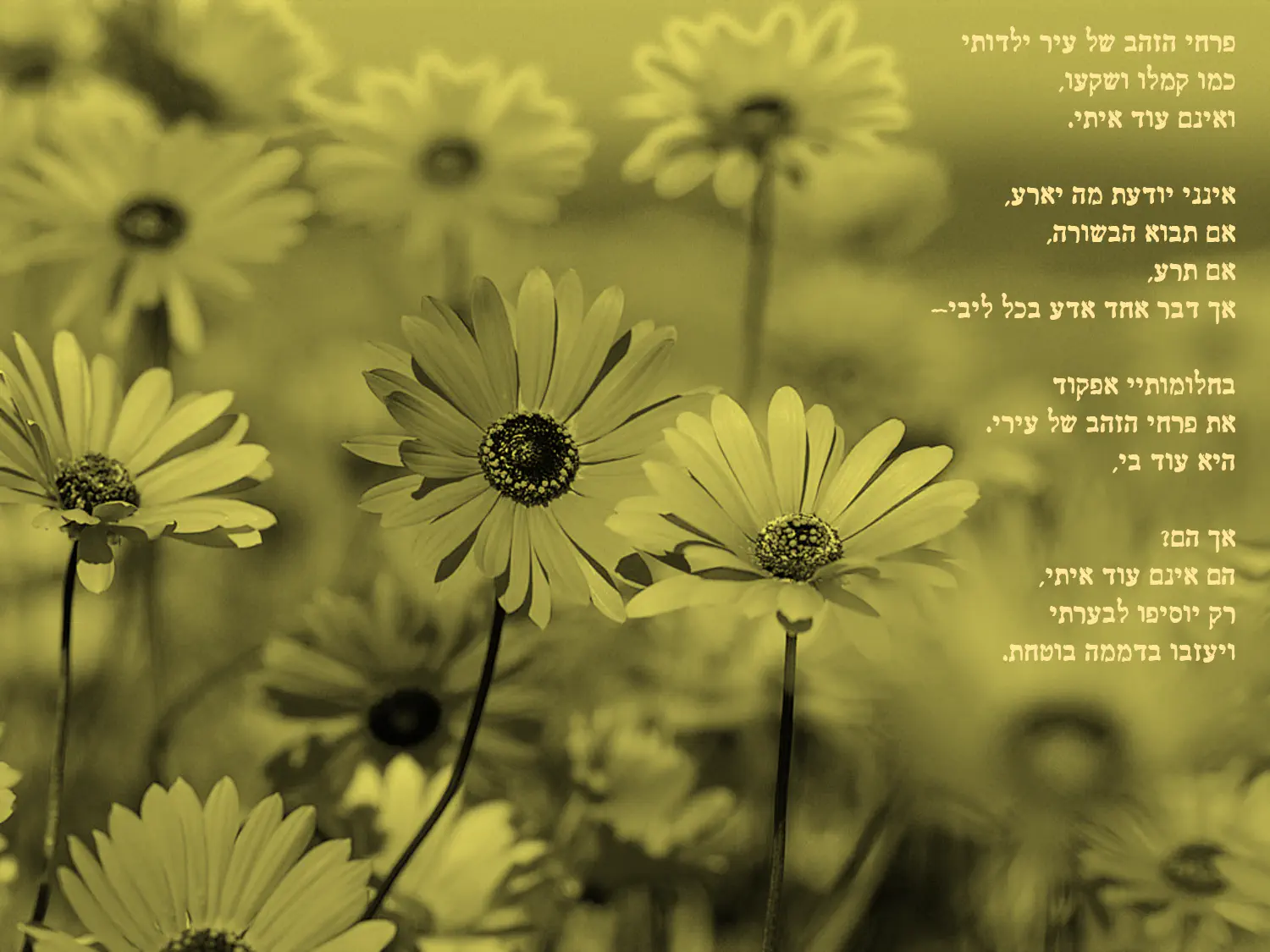 ילד עברי, בביתי בציון המשפלת. ערב. דמדום. אני שח - ואתה לברכי.
