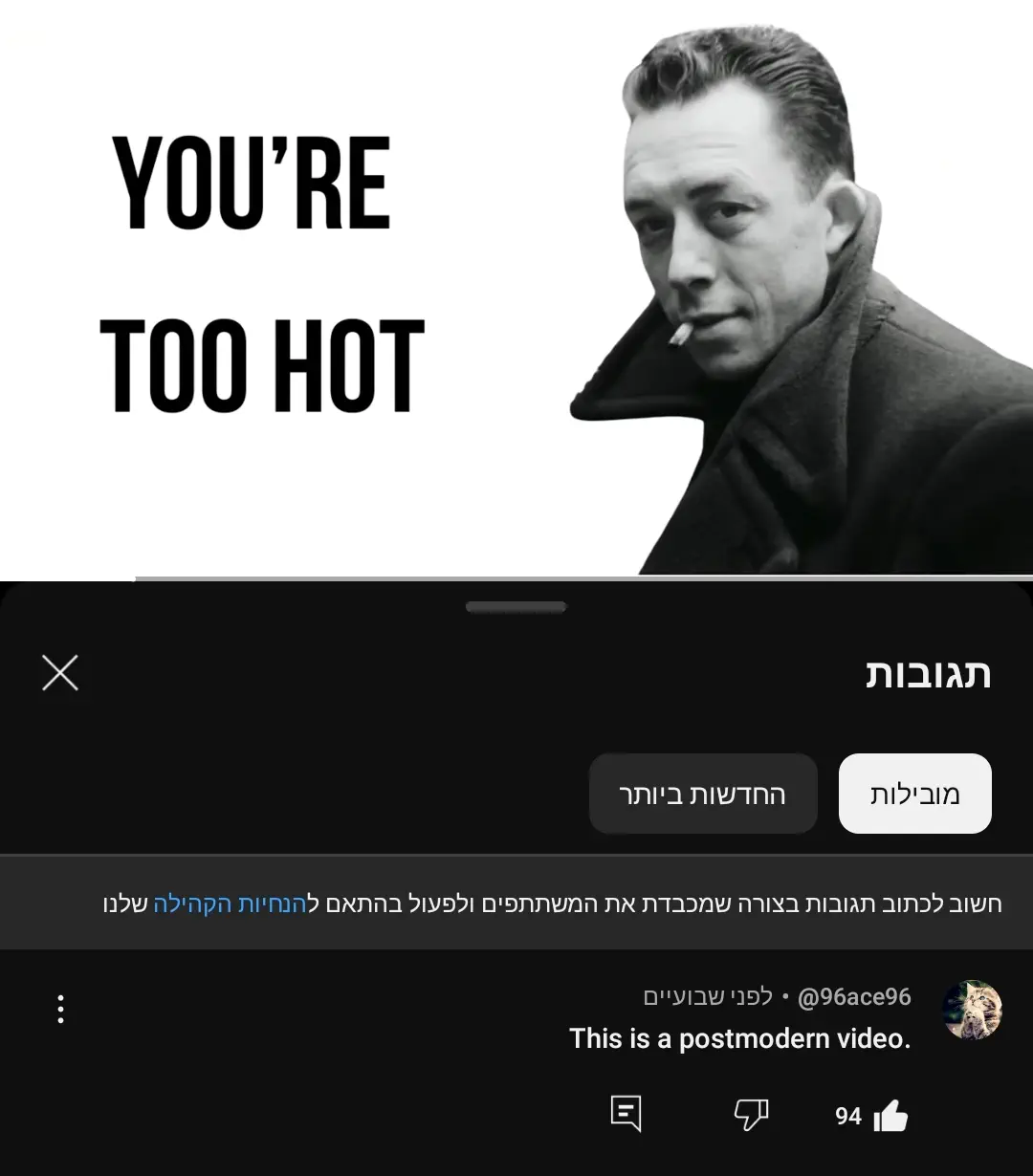 אגב, תראה איזו תגובה ישרה לסרטון מהסוג הרדוד והמכוער והשנוא ביותר:
