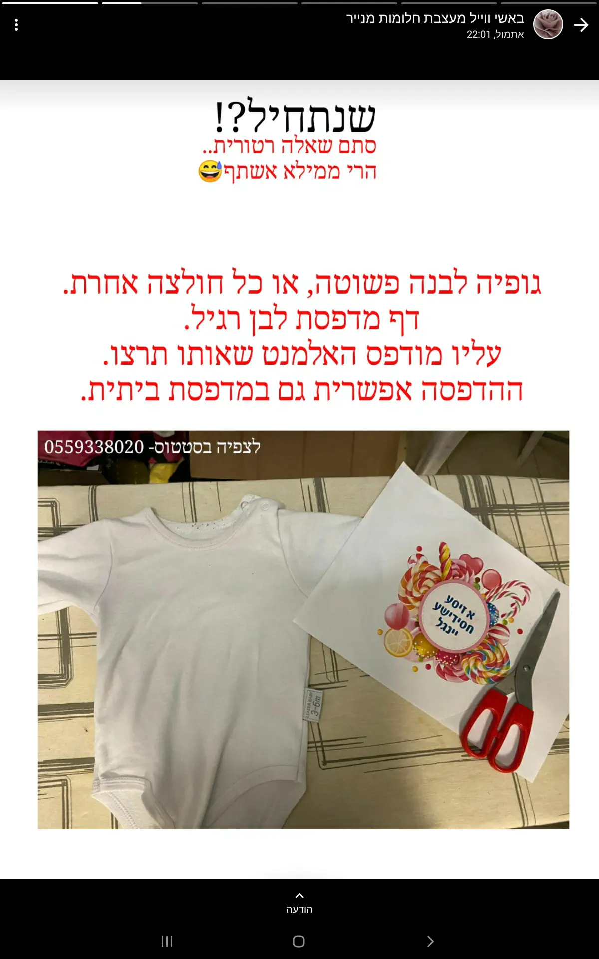 כי הקודמות עשו לה אינפקציה. זה עלה סכום גבוה ב''ה. היה זמן מתוק ובדרך חזרה פטפטנו ושאלתי אותה מתוך התעניינות כנה ואוהבת מה קרה בסוף עם הש.ב שהיא לא עשתה (היא נזכרה בבוקר והיתה לחוצה מזה ולכן רציתי לדעת אם הכל היה בסדר בסוף. היא בכיתה א'). ואז היא סיפרה שבסדר גמור, היא עשתה את החתימה שלנו כאילו שהיא באמת קראה את דף הקריאה והמורה אמרה לה כל הכבוד. במילים שלי, היא עבדה על המורה.