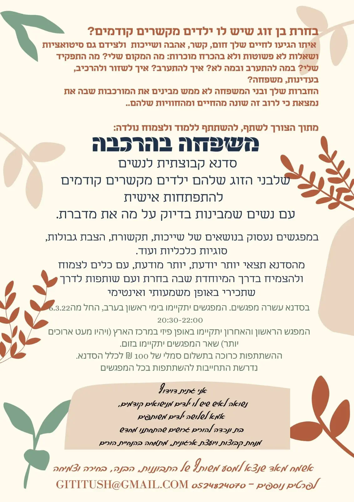 מחפשת רעיון לאיוורור משפחתי בסוף השבוע/שבת