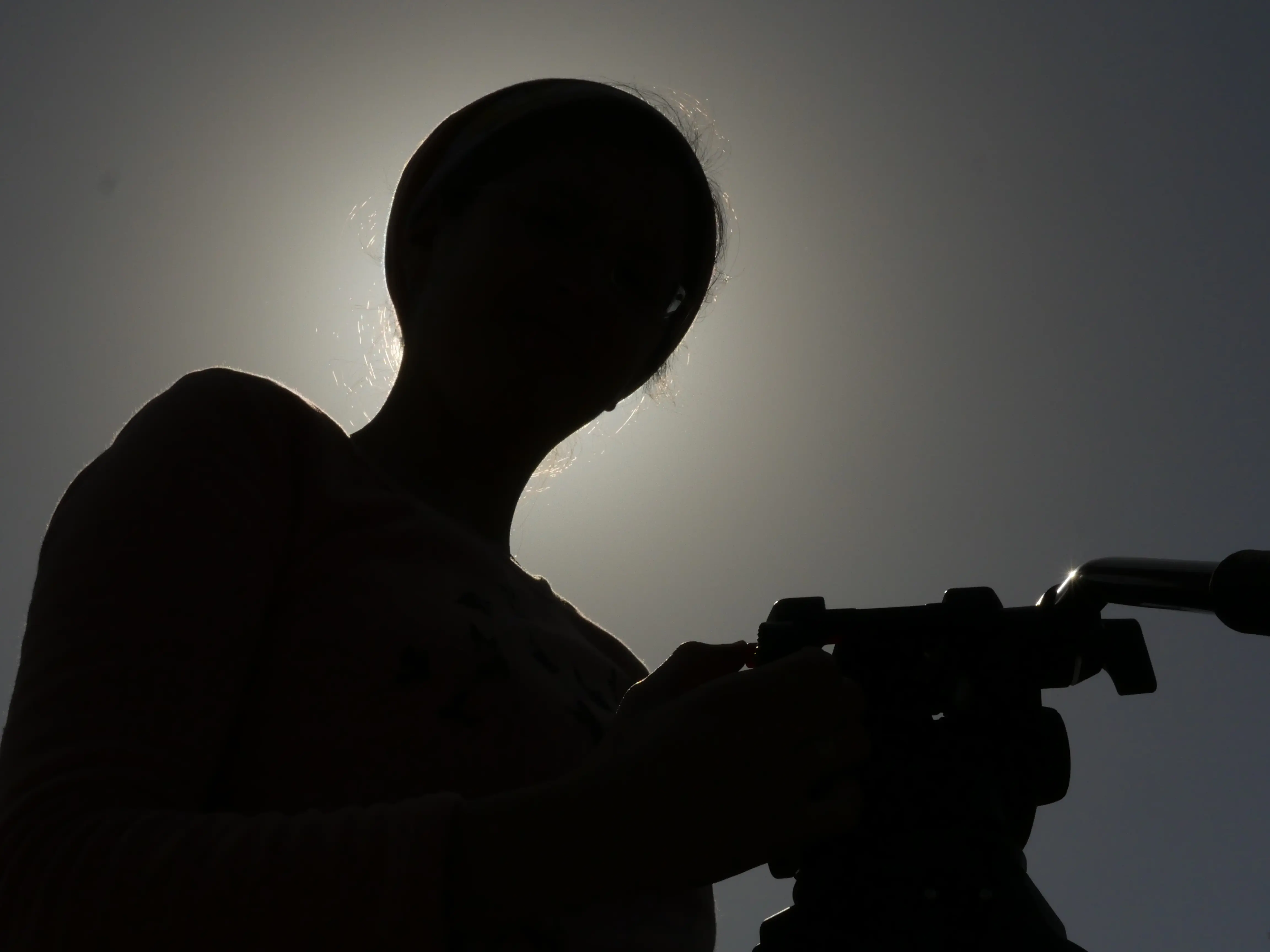 זה צילום מזיות נמוכה של בחורה [עם כיסו"ש..] וחצובה.