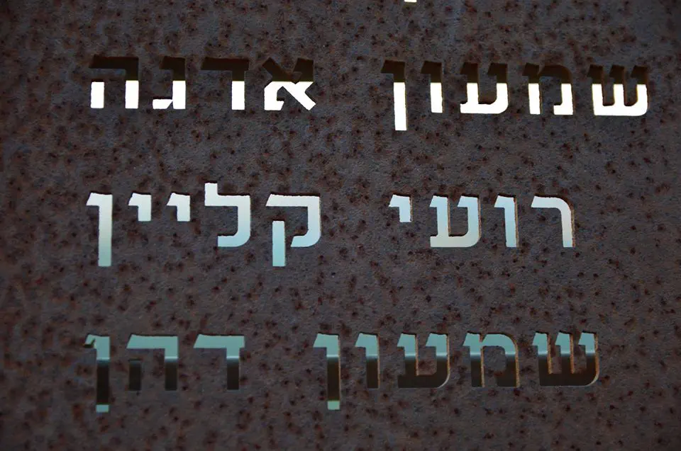 שנייה לפני שהלכתי פתאום ראיתי את השם רועי קליין, בין כל שמות ההרוגים מהקרב בבינת ג'בל. הנוף בתוך השמות הוא הנוף של לבנון, שבה הם נלחמו, וזה מין חיבור כזה. תמונה של השם שלו על הנוף שבו הוא נלחם.