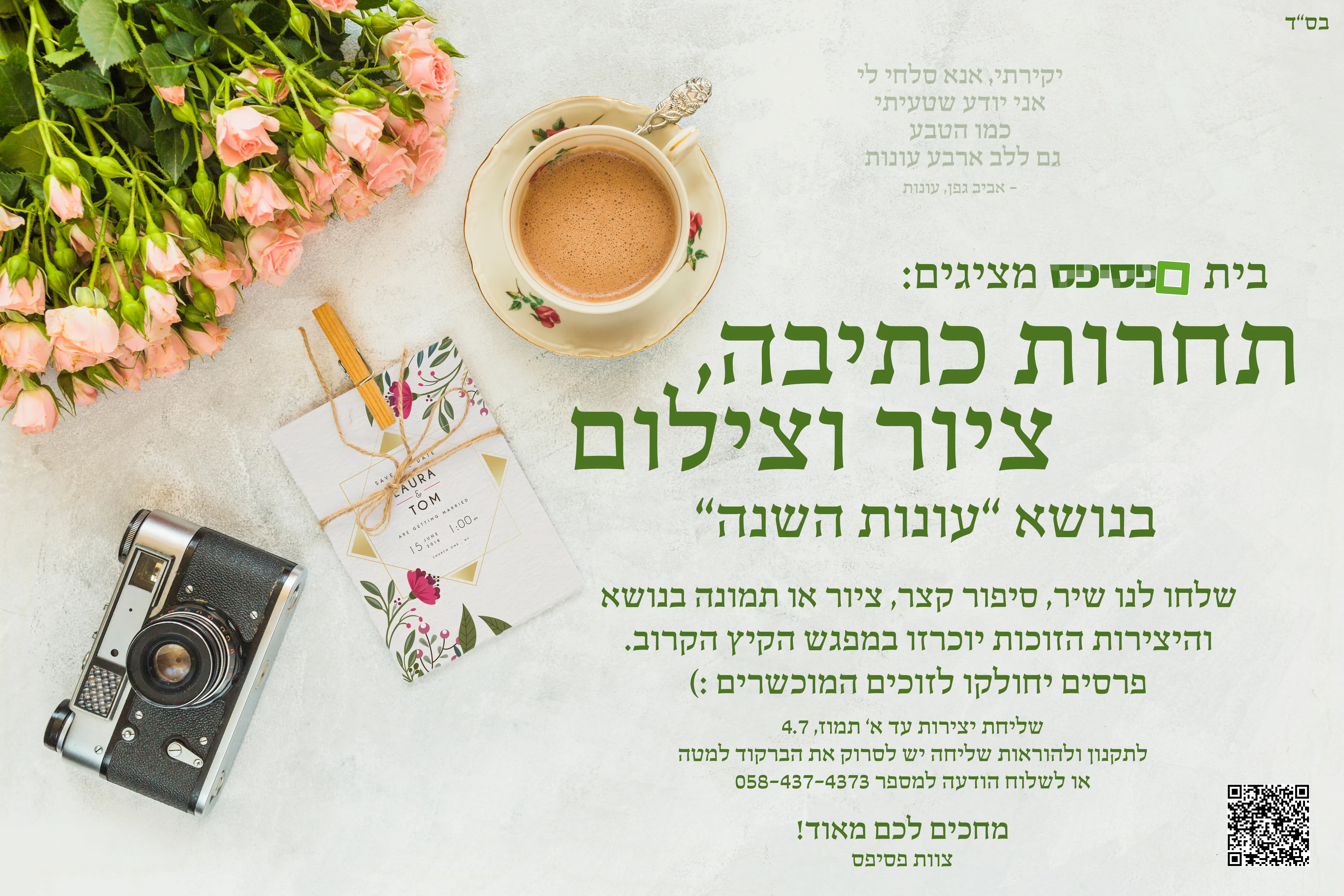 אה, ושמעו משהו, אנחנו רוצים שהתחרות תגיע גם ללוחות מודעות בישיבות ובאולפנות. מי שידפיס, יתלה, יצלם וישלח לנו יזכה בשיר מחורז לגמרי לכבודו שיתפרסם בעמוד הפייסבוק הלהיט שלנו. אנחנו יודעים שזה החלום של כולכם. (דברו איתנו לפני, נשלח לכם את הקובץ המקורי להדפסה)