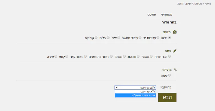 תגידו לו את זה. בשיר, בסיפור, בצילום, בציור, בעבודת יד או בעבודת פוטושופ. את התוצר תשלחו לנו לפסיפס ל"אתגר חורף תשע"ט" דרך הקישור הזה או דרך "יצירה חדשה", בחירת מדור וסימון הפרויקט (דוגמה בתמונה המצורפת). תציינו בכותרת "אתגר חורף תשע"ט". היצירות הטובות יועלו לאתר.