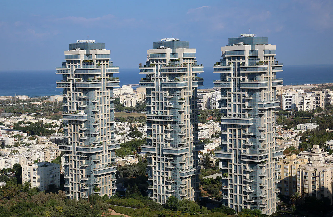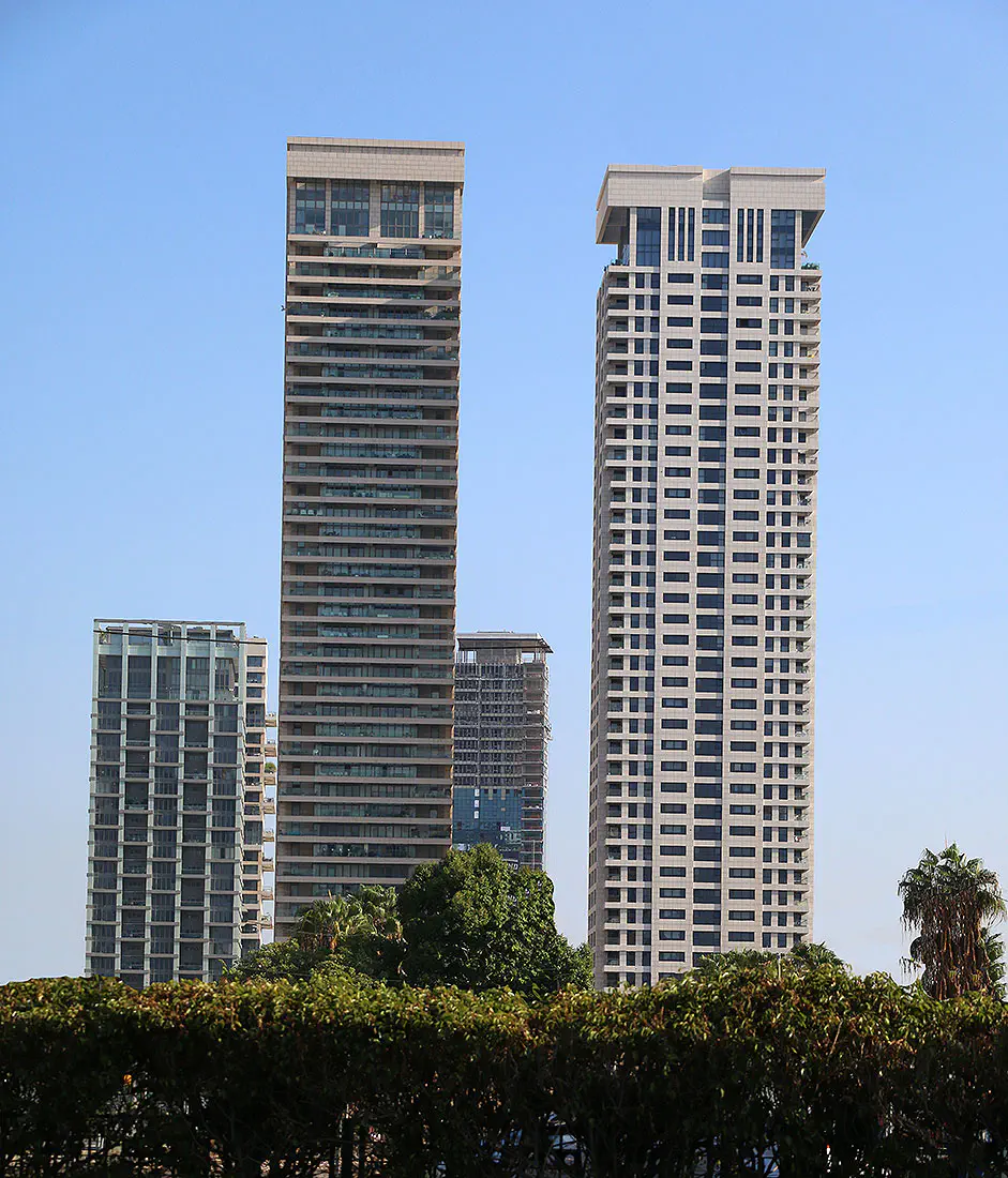 צילומים של מגדלים בניינים גבוהים גורדי שחקים בעיר תל אביב