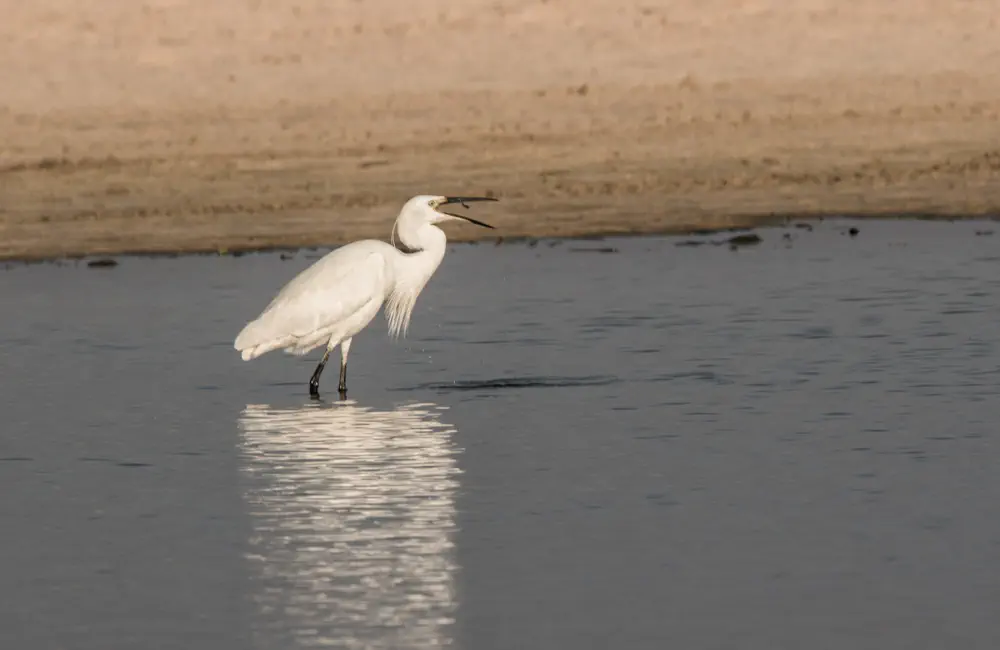 תמונה לדוגמא (בתמונה רואים לבנית אוכלת דג, שצבע הכנפיים שלה משתקף במים)-