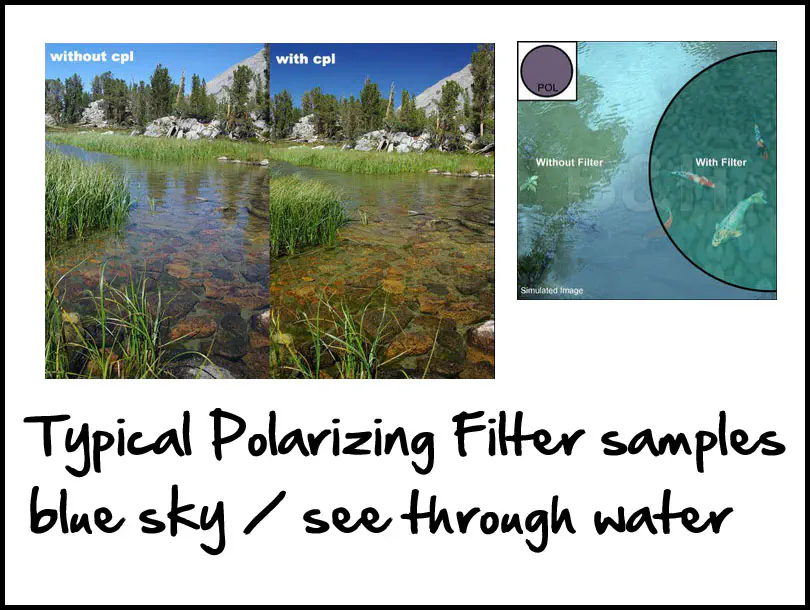 לגבי צילום במהלך היום רוב הצלמים המקצועיים מצלמים עם פילטר פולריזר אשר גורם לצבעים להיות בוהקים ומוריד את ההשתפקות.