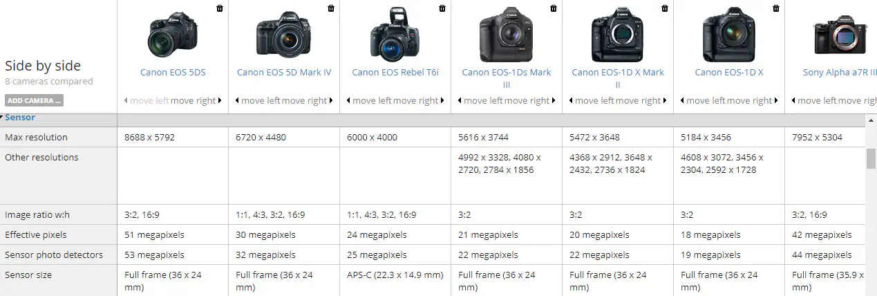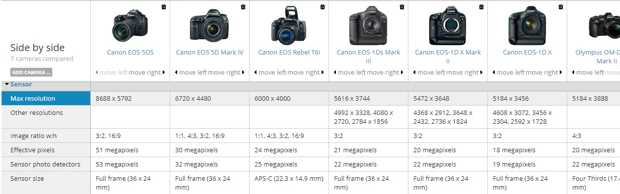 תשווה קנון 1DX 18MP וקנון 5Dדור4 30MP וקנון 5DS 51MP וגם תשווה עם Hasselblad X1D 50MP-פורמט בינוני 44X33MM לעומת FF שזה רק 36X24.