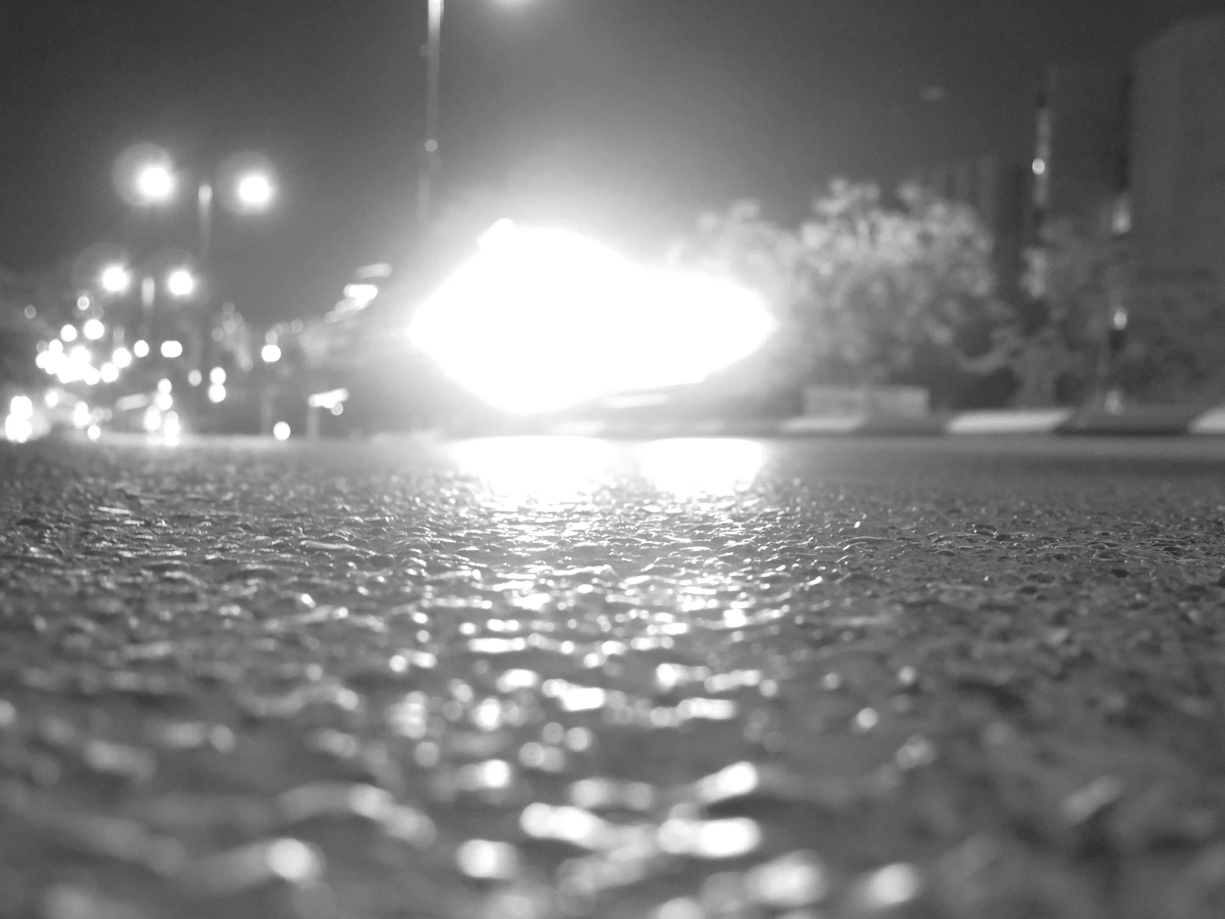התמונה צולמה מגובה אפס (שכבתי על המדרכה בעיקול הרחוב, כך שהייתי בדיוק מול המכוניות אך לא על הכביש...) ומה שרואים זוהי מכונית דוהרת לכיוון המצלמה.