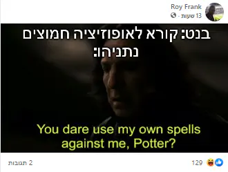 כל אחד חיפש נקודה חזקה והסתובב, והשני לא רצה לתת לו אותה.מתנחל בראבקאחרונה