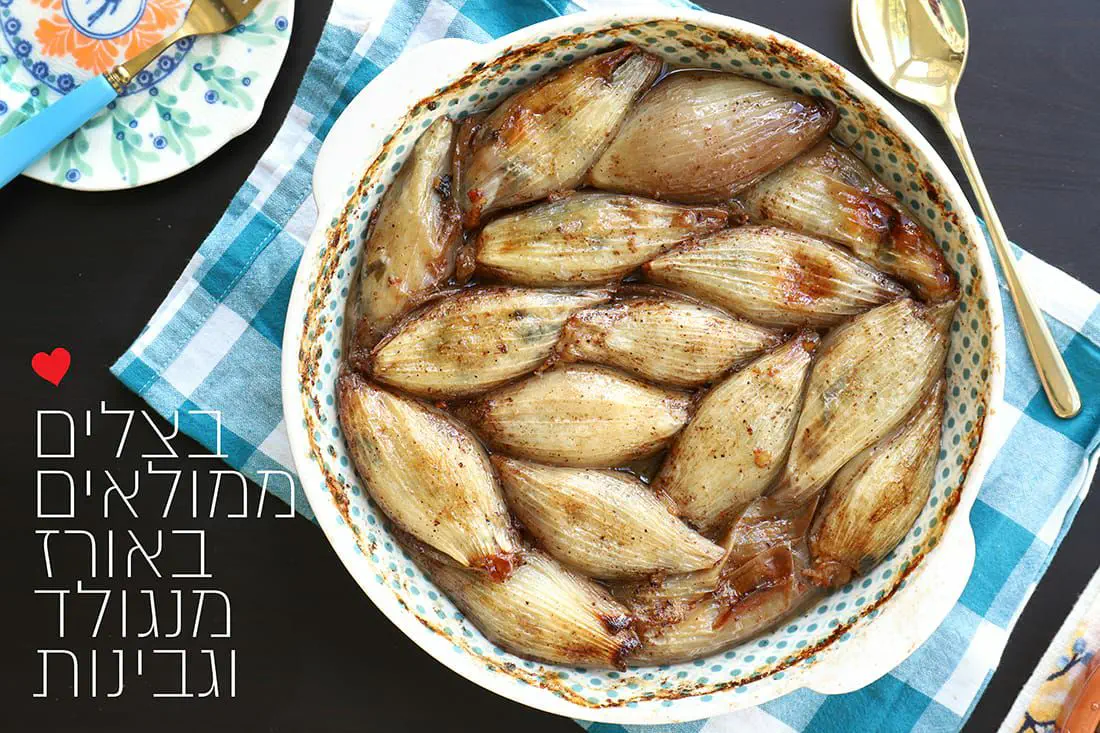 בצלים ממולאים באורז מנגולד וגבינותכישוף כושל