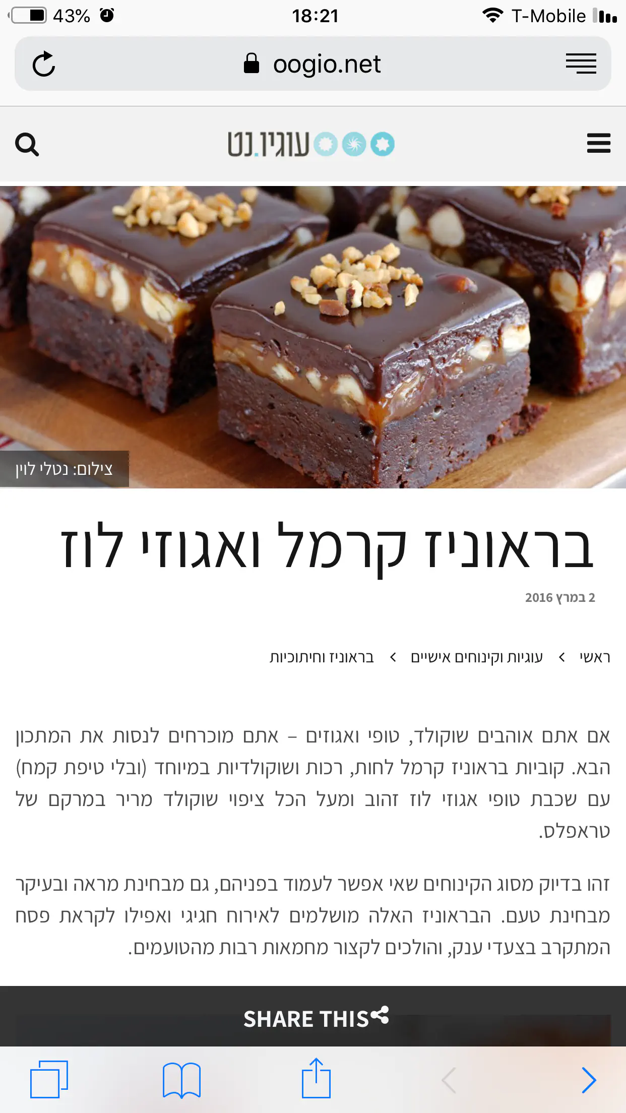 לא התאפקתי... בראוניז כרמל ואגוזי לוזפנסאי
