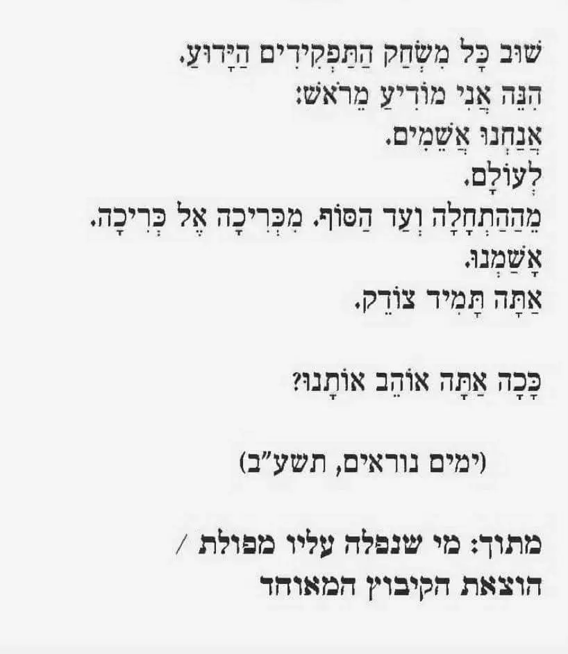 וַיֻּגַּ֖ד לְיוֹאָ֑ב הִנֵּ֨ה הַמֶּ֧לֶךְ בֹּכֶ֛ה וַיִּתְאַבֵּ֖ל עַל־אַבְשָׁלֹֽם׃ {ג} וַתְּהִ֨י הַתְּשֻׁעָ֜ה בַּיּ֥וֹם הַה֛וּא לְאֵ֖בֶל לְכָל־הָעָ֑ם כִּֽי־שָׁמַ֣ע הָעָ֗ם בַּיּ֤וֹם הַהוּא֙ לֵאמֹ֔ר נֶעֱצַ֥ב הַמֶּ֖לֶךְ עַל־בְּנֽוֹ׃ {ד} וַיִּתְגַּנֵּ֥ב הָעָ֛ם בַּיּ֥וֹם הַה֖וּא לָב֣וֹא הָעִ֑יר כַּאֲשֶׁ֣ר יִתְגַּנֵּ֗ב הָעָם֙ הַנִּכְלָמִ֔ים בְּנוּסָ֖ם בַּמִּלְחָמָֽה׃ {ה} וְהַמֶּ֙לֶךְ֙ לָאַ֣ט אֶת־פָּנָ֔יו וַיִּזְעַ֥ק הַמֶּ֖לֶךְ ק֣וֹל גָּד֑וֹל בְּנִי֙ אַבְשָׁל֔וֹם אַבְשָׁל֖וֹם בְּנִ֥י בְנִֽי׃ (ס) {ו} וַיָּבֹ֥א יוֹאָ֛ב אֶל־הַמֶּ֖לֶךְ הַבָּ֑יִת וַיֹּאמֶר֩ הֹבַ֨שְׁתָּ הַיּ֜וֹם אֶת־פְּנֵ֣י כָל־עֲבָדֶ֗יךָ הַֽמְמַלְּטִ֤ים אֶֽת־נַפְשְׁךָ֙ הַיּ֔וֹם וְאֵ֨ת נֶ֤פֶשׁ בָּנֶ֙יךָ֙ וּבְנֹתֶ֔יךָ וְנֶ֣פֶשׁ נָשֶׁ֔יךָ וְנֶ֖פֶשׁ פִּלַגְשֶֽׁיךָ׃ {ז} לְאַֽהֲבָה֙ אֶת־שֹׂ֣נְאֶ֔יךָ וְלִשְׂנֹ֖א אֶת־אֹהֲבֶ֑יךָ כִּ֣י ׀ הִגַּ֣דְתָּ הַיּ֗וֹם כִּ֣י אֵ֤ין לְךָ֙ שָׂרִ֣ים וַעֲבָדִ֔ים כִּ֣י ׀ יָדַ֣עְתִּי הַיּ֗וֹם כִּ֠י לא [ל֣וּ] אַבְשָׁל֥וֹם חַי֙ וְכֻלָּ֤נוּ הַיּוֹם֙ מֵתִ֔ים כִּי־אָ֖ז יָשָׁ֥ר בְּעֵינֶֽיךָ"