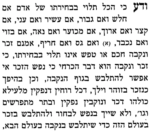 כל החיים שלך (כמעט) הם נטולי בחירות במהלכם. ראית כמעט כבר את כל הסרט ובחרת בו מלכתחילה. הנקודה היחידה שלא ראית ולא בחרת היא יראת שמים (והוא הוסיף עוד חכם או טיפש, זכר או נקבה). בכל הצמתים האלו בחיים את באמת בוחרת, וכל השאר הוא תסריט קבוע מראש.