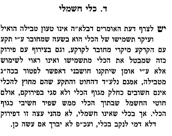 אבל כאן לא מדובר בטומאה, אלא בדין על כלי חדש וההגדרה של כלי חדש הוא לא בפסילה אלא אפילו מחוסר הכאה בפטיש. כך שאם הכלי נפגם מעט, וחזר היהודי ועשה בו מעשה אומן הרי שהכלי נעשה בידי וברשות יהודי ופטור מטבילה.