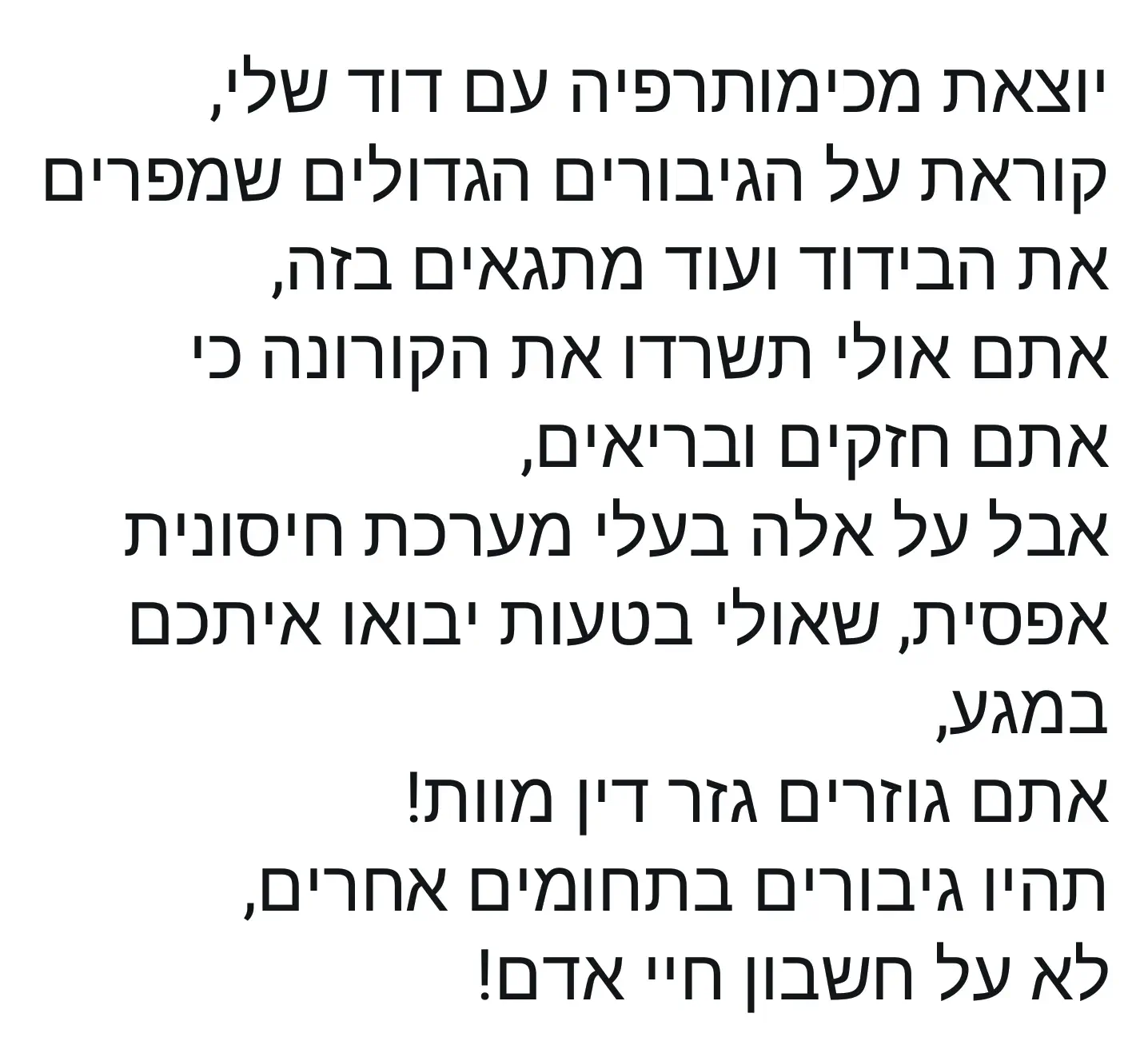 אם במהלך הבידוד מופיעים סימפוטמים של חום או שיעול או קושי בנשימה יש להתקשר באופן מיידי למוקד 101
