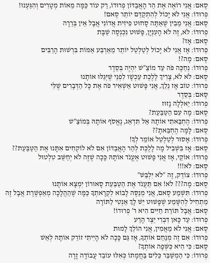 פרודו: תשמע סאם, אני מנסה לבוא לקראתך כמה שההלכה מאפשרת אבל זה מתחיל להישמע שפשוט יש לך אנטי לתורה