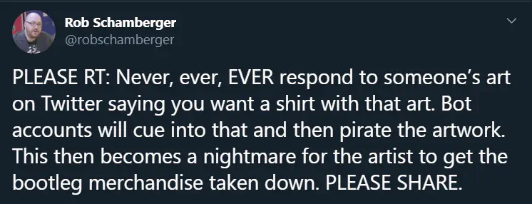 הבעיה היא, שהרובוטים האלו גונבים את האומנות בלי אישור היוצר, ובכך מונעים ממנו עצמו למכור מרצ'נדייז של האומנות שלו, וכידוע הרבה אומנים מתפרנסים מלמכור את זה באתרים שלהם.