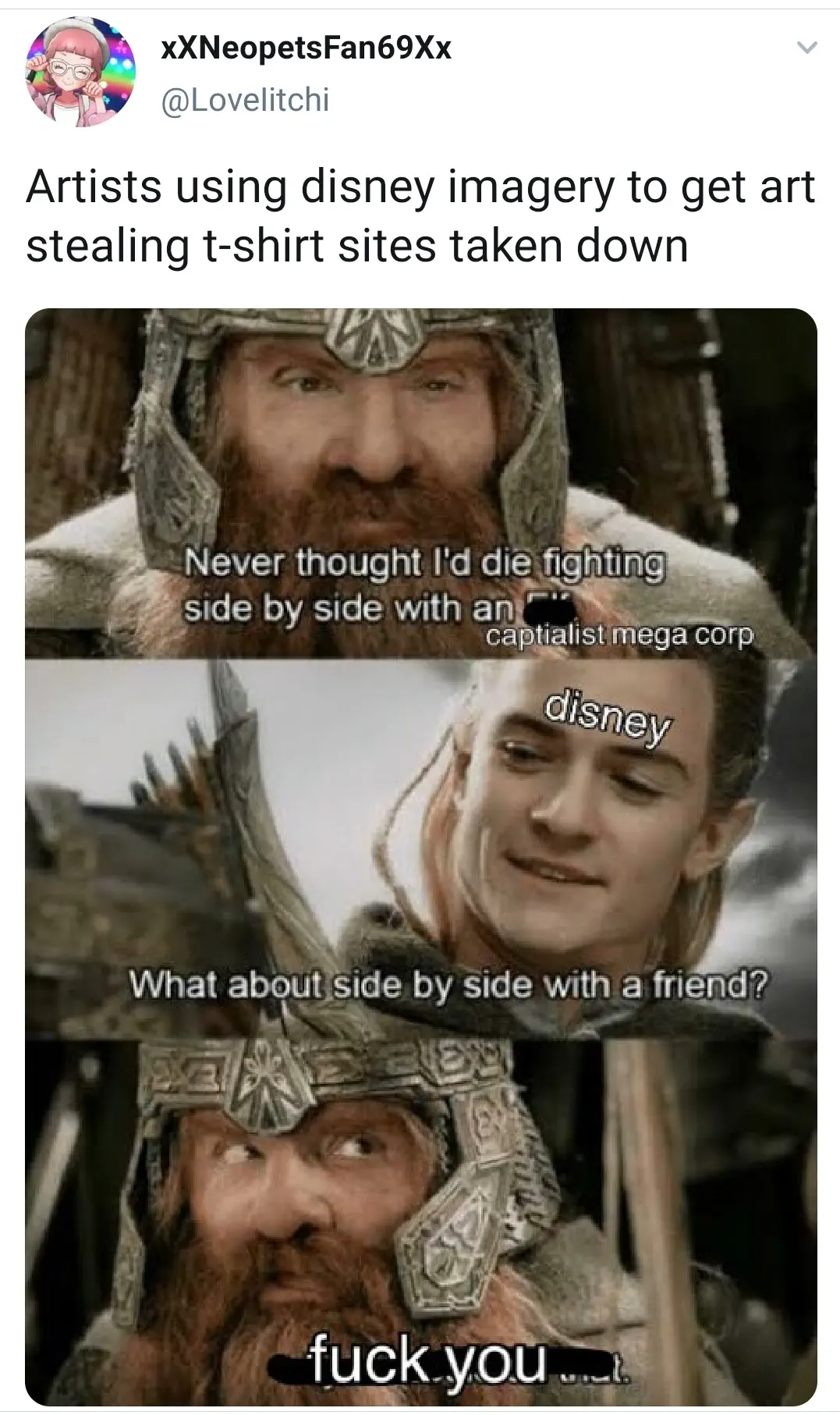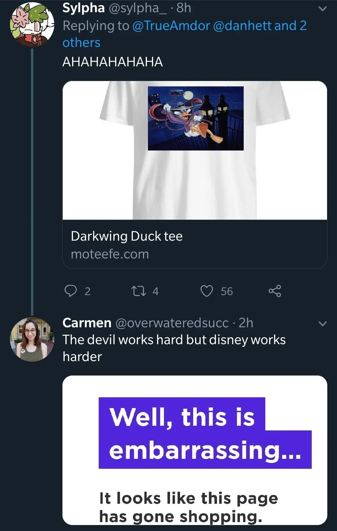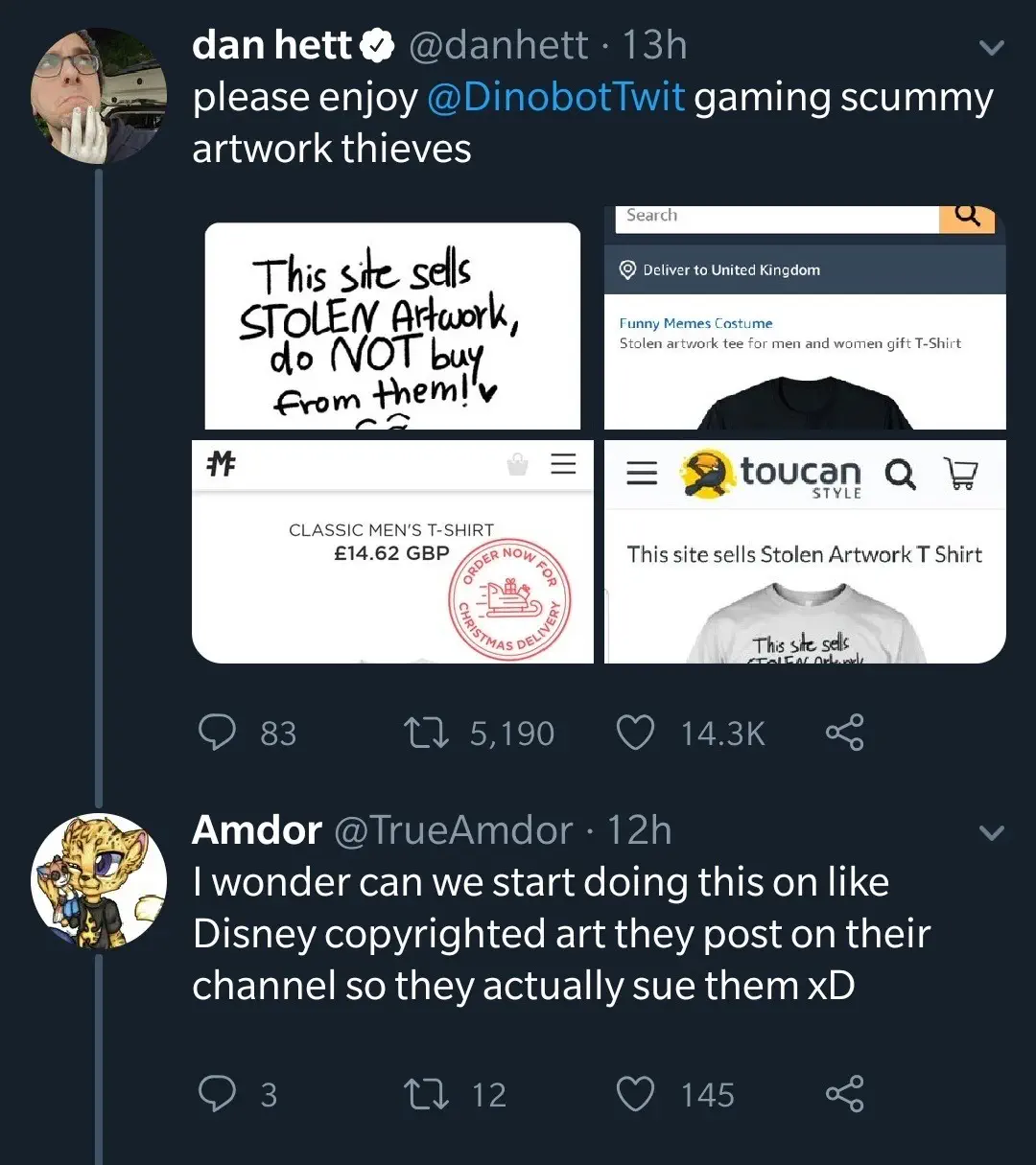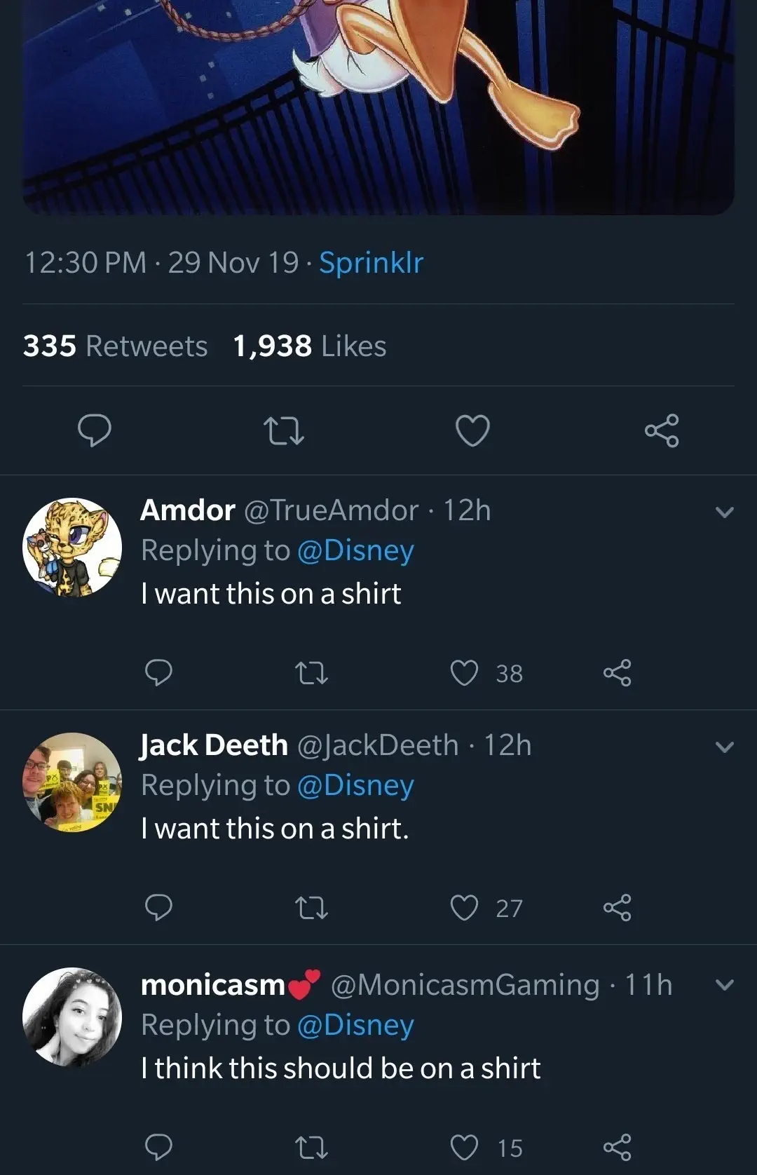 הם לקחו תמונות מסרטים חדשים של דיסני (שעדיין לא הותרו להפצה), הפיצו ברחבי טוויטר עם התגובות "שימו את זה על חולצה!" ואז תייגו את דיסני כשמצאו קישור לאתר שמוכר את החולצות האלו.