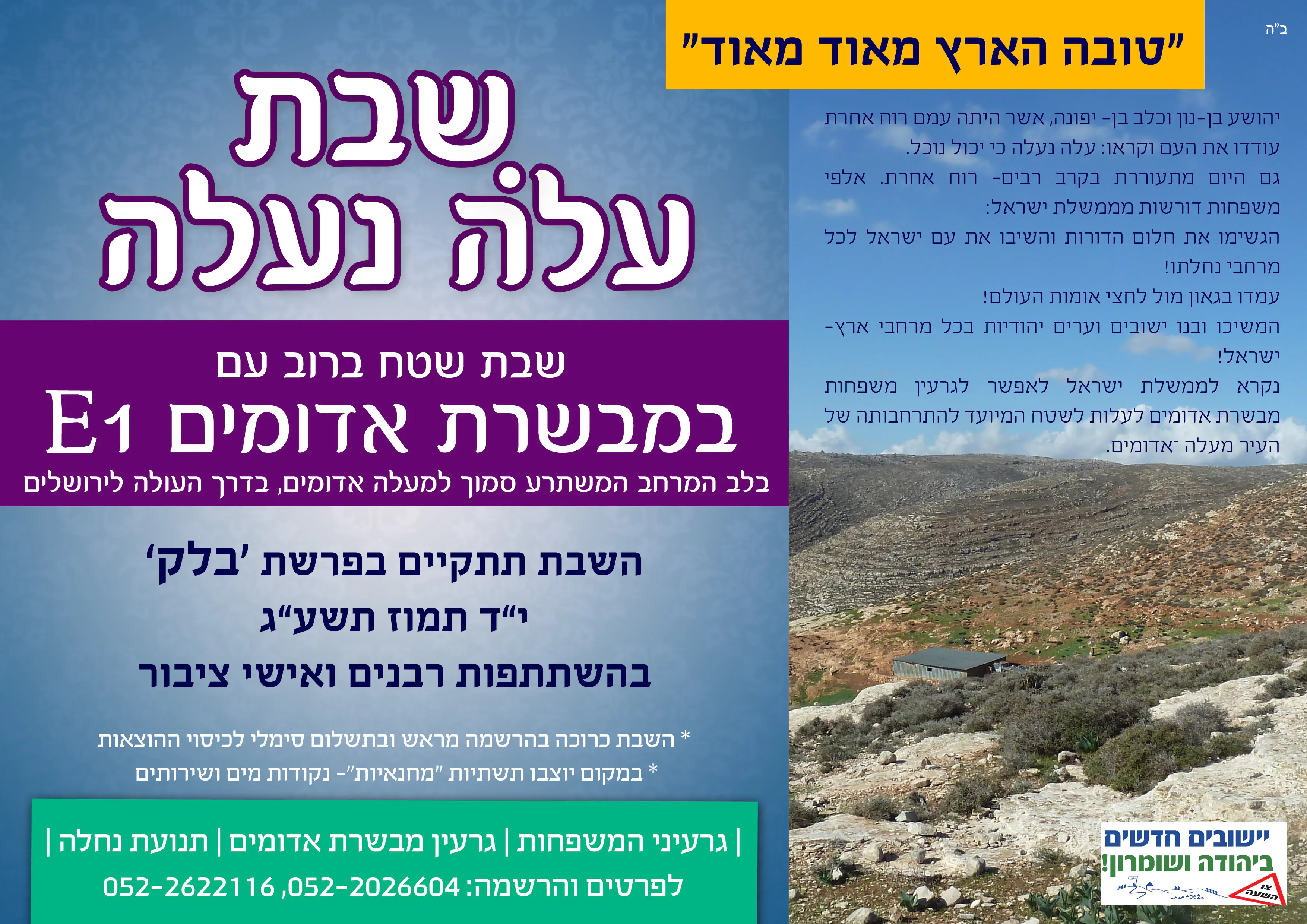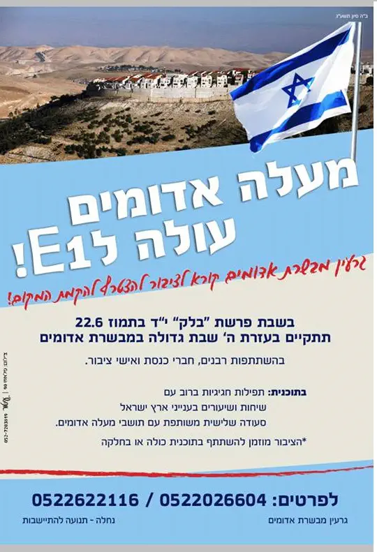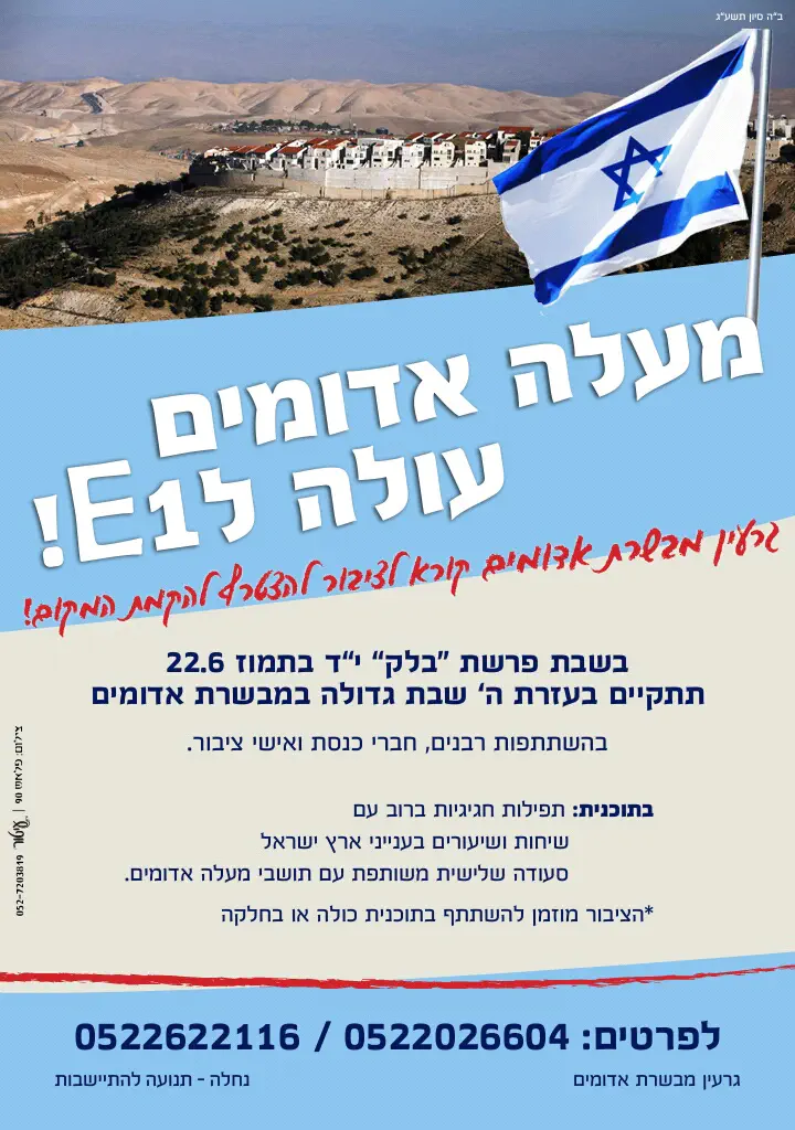 לסניף בני עקיבא נופי הסלע וידבר על החשיבות של הבנייה בE1 - מבשרת אדומים