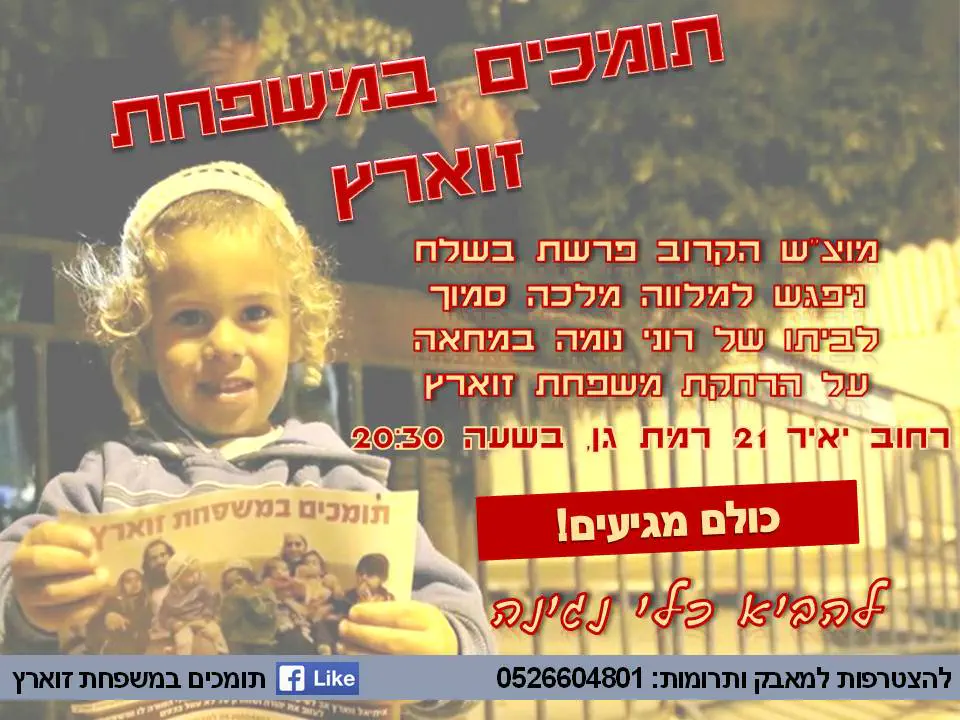 ב. לסיוע למאבק: הדסה – 0586208287 (בהודעה). לפרטים נוספים: מוריה – 0509013344.