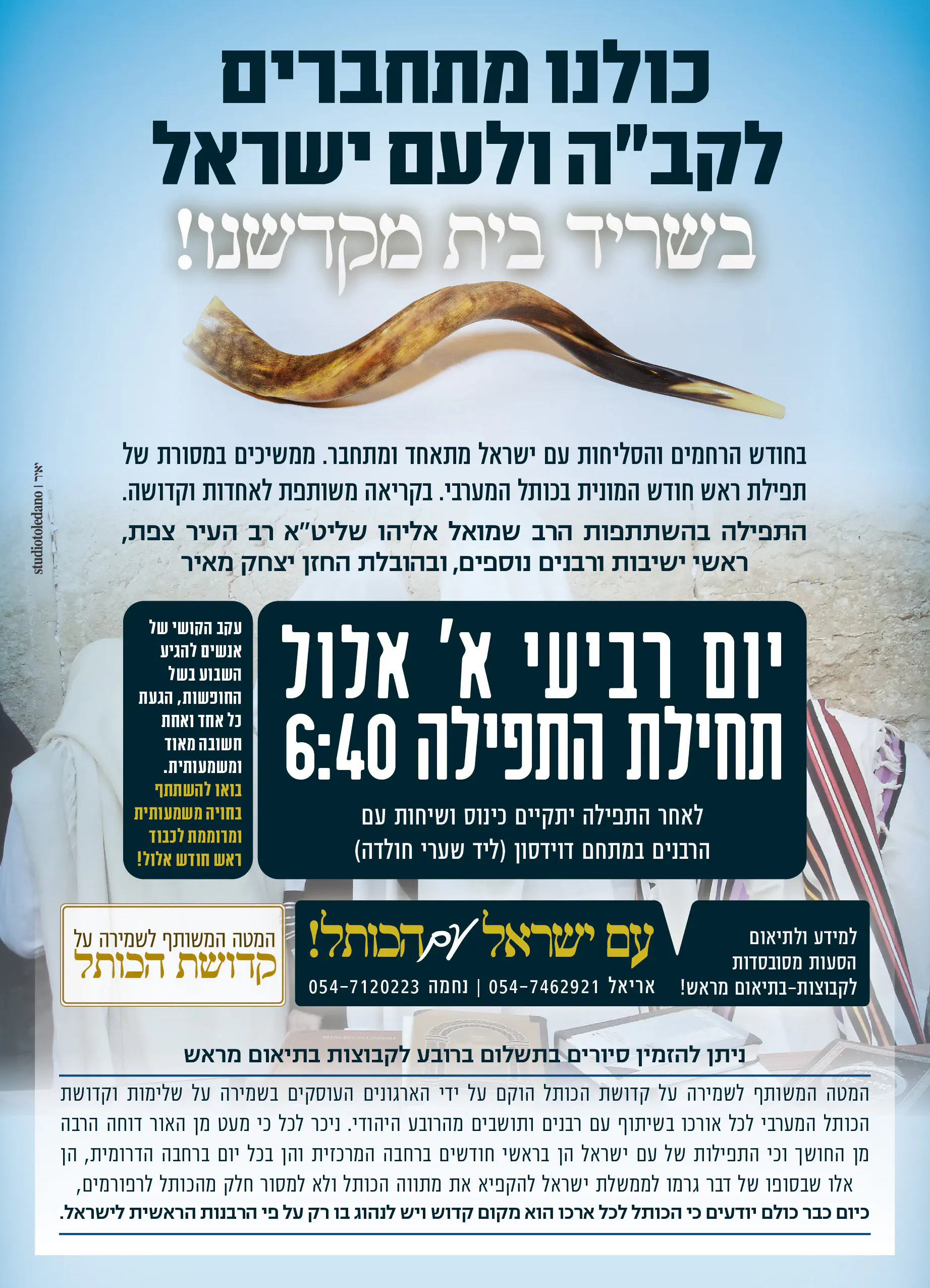 ביחד פתחו לנו לצאת לתפילות בימי חול,שבתות ןחגים.